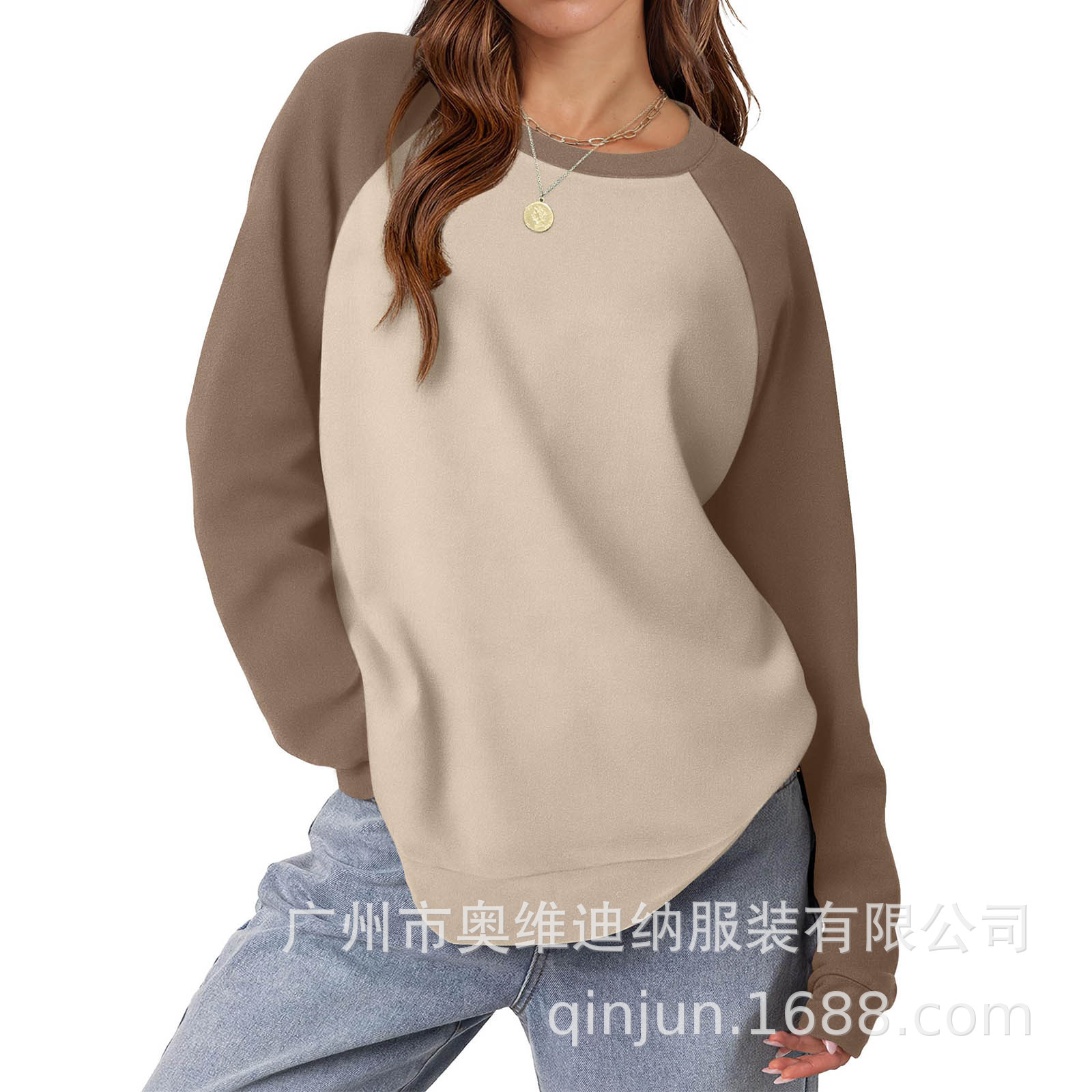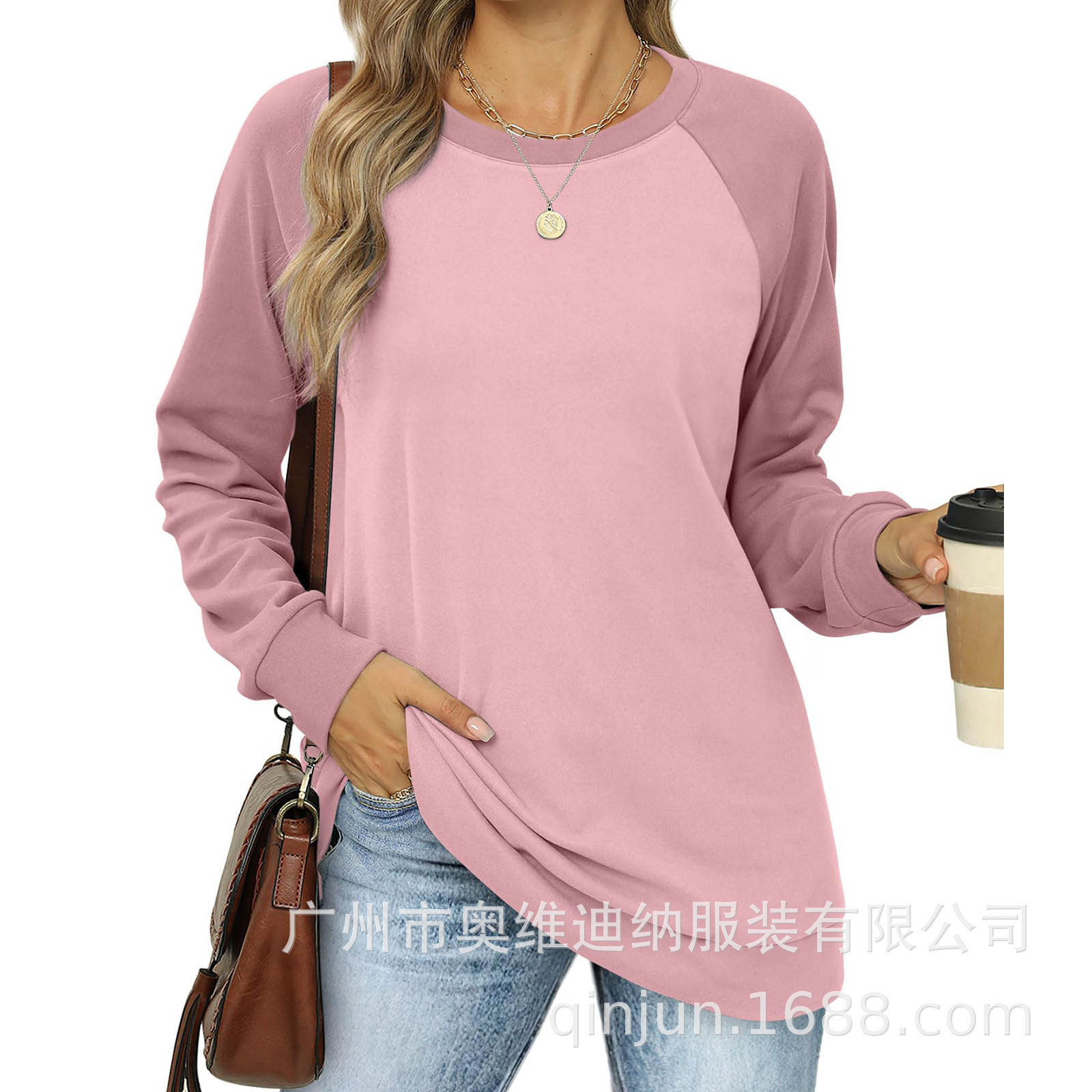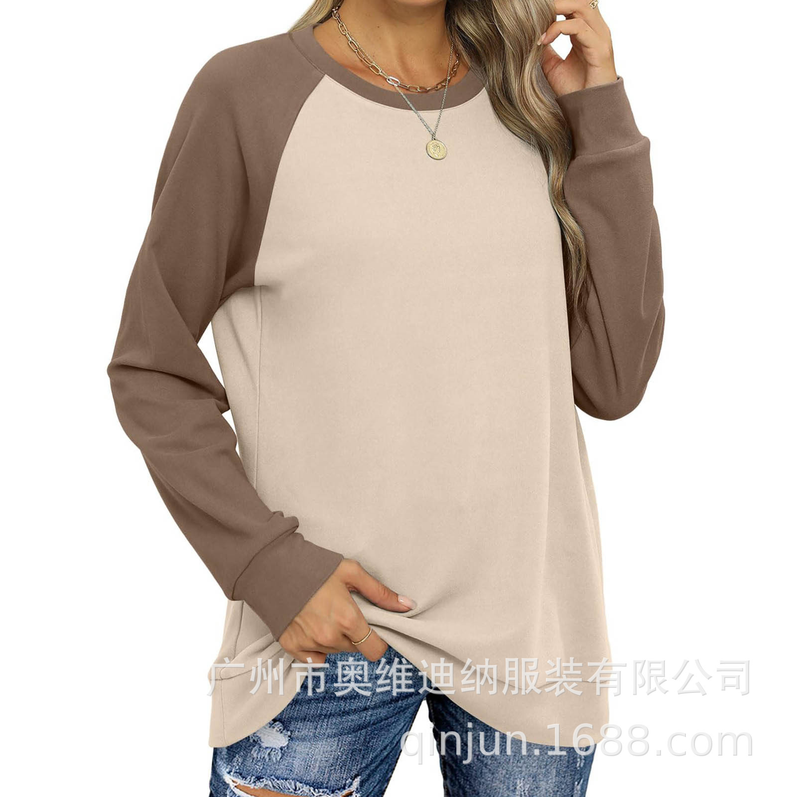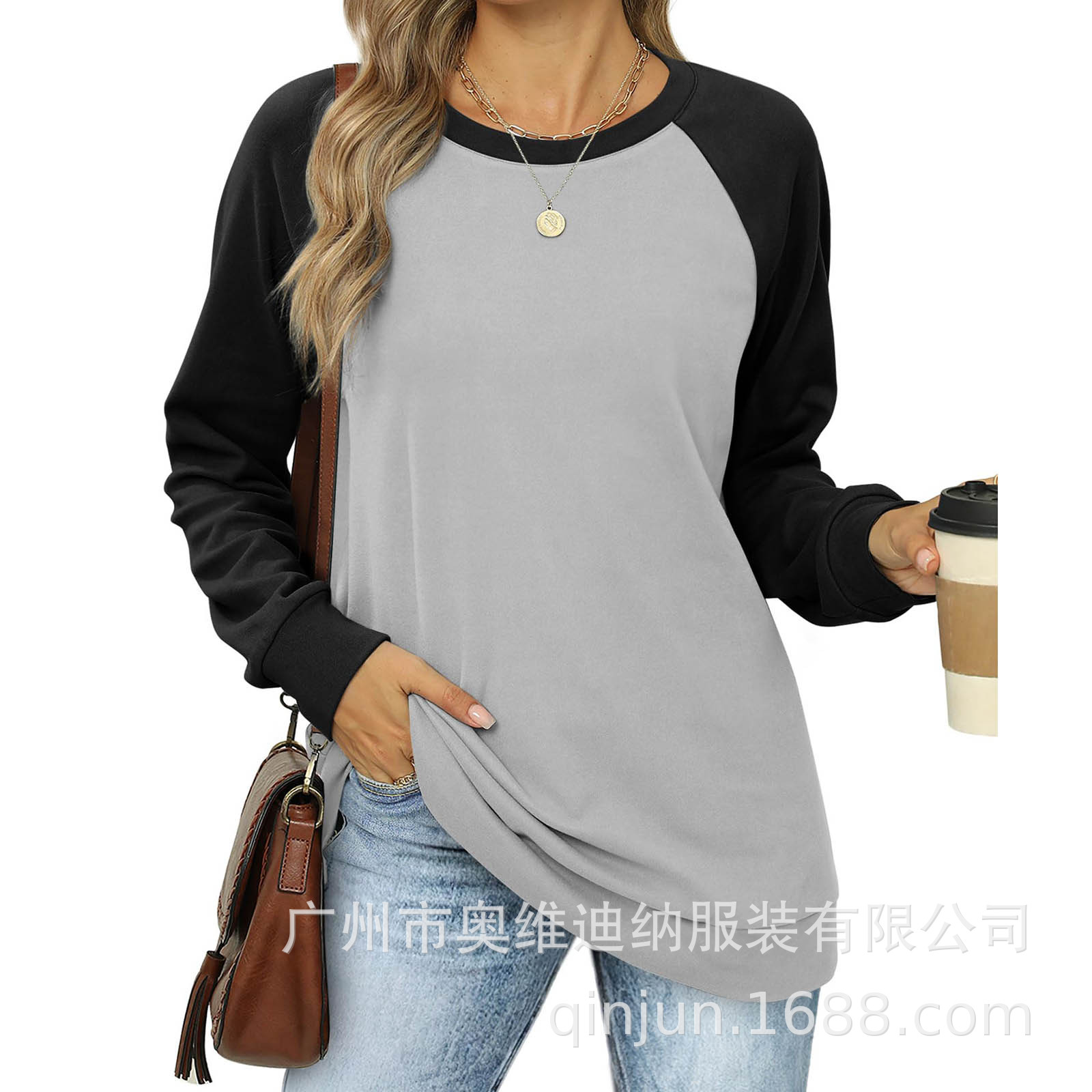 2024 유럽과 미국 국경 대외 무역 여성의 새로운 아마존 독립 역 가을 레저 승무원 목 라글란 컬러 매칭 긴 소매스토어 가기