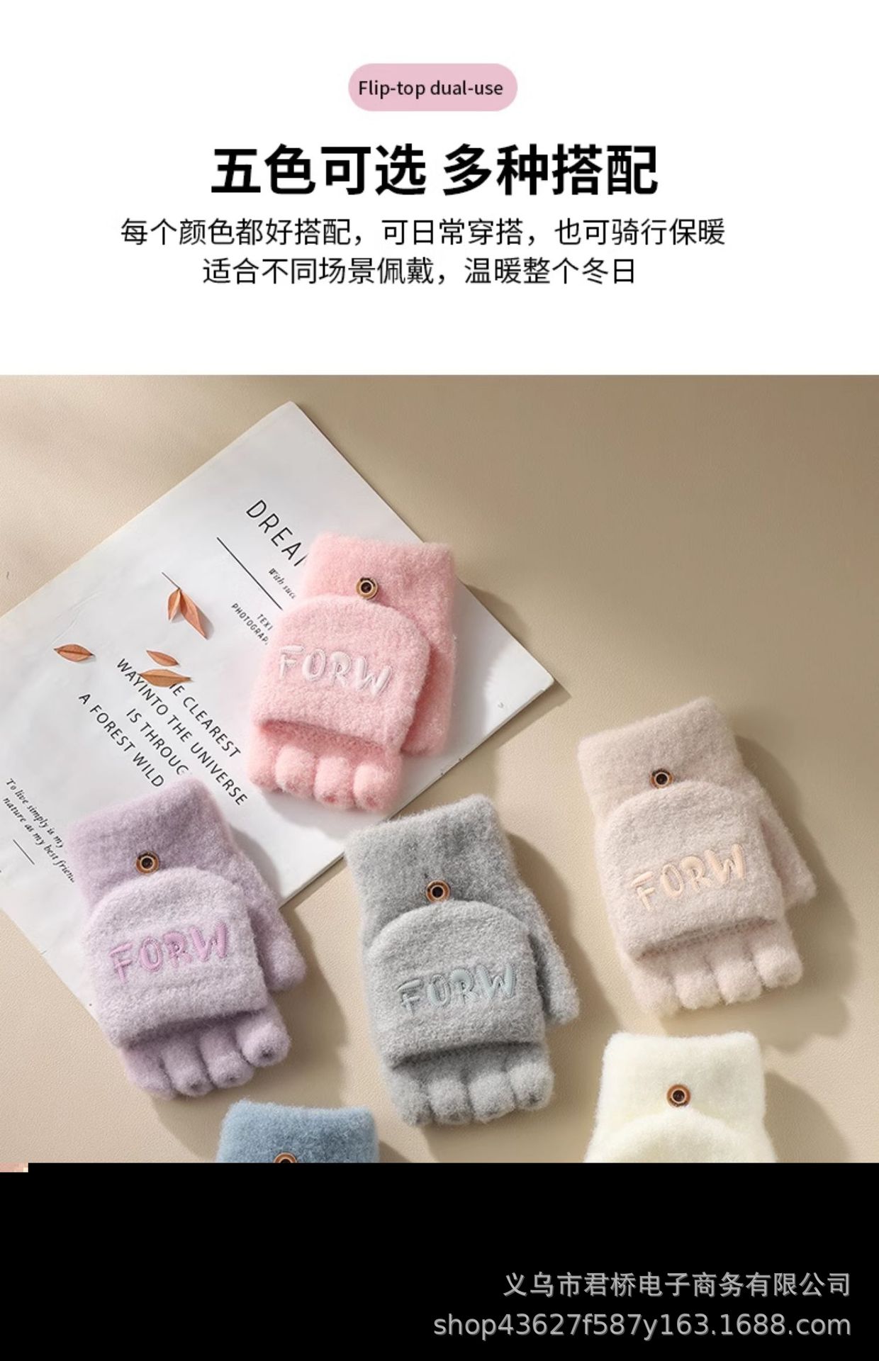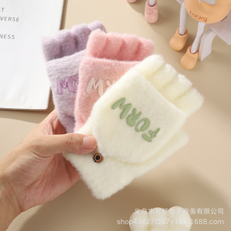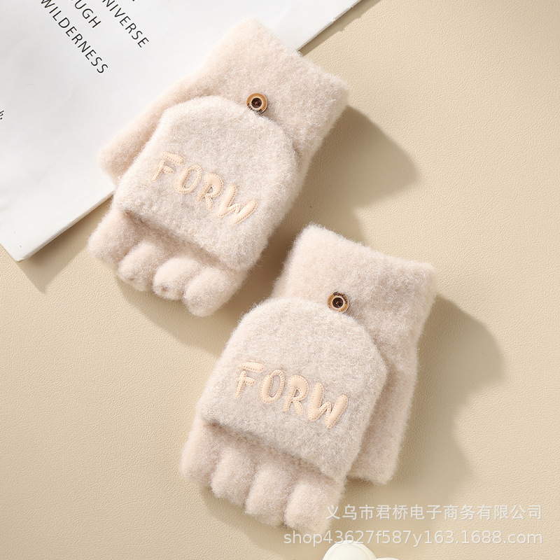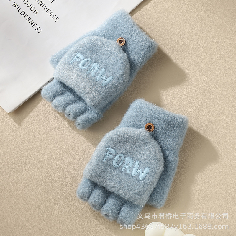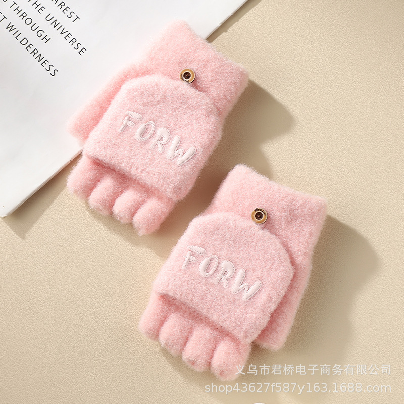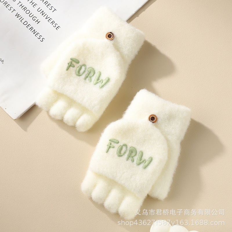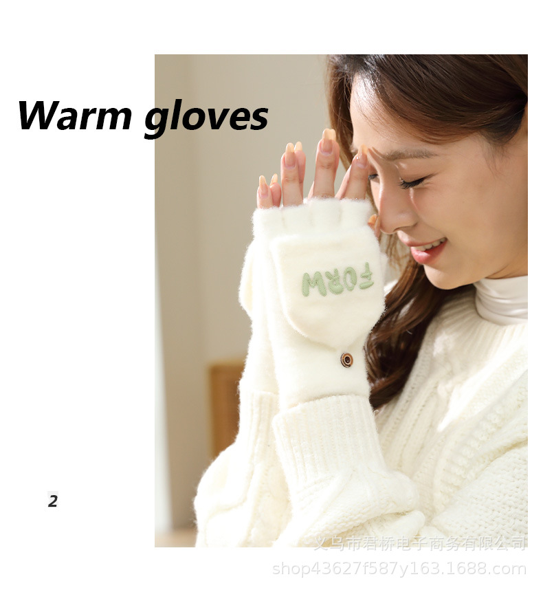 여성 성인을위한 새로운 반 손가락 플립 온 장갑 겨울 감기 방지 따뜻한 이슬 반 손가락 학생 서리 방지 수업 글쓰기스토어 가기