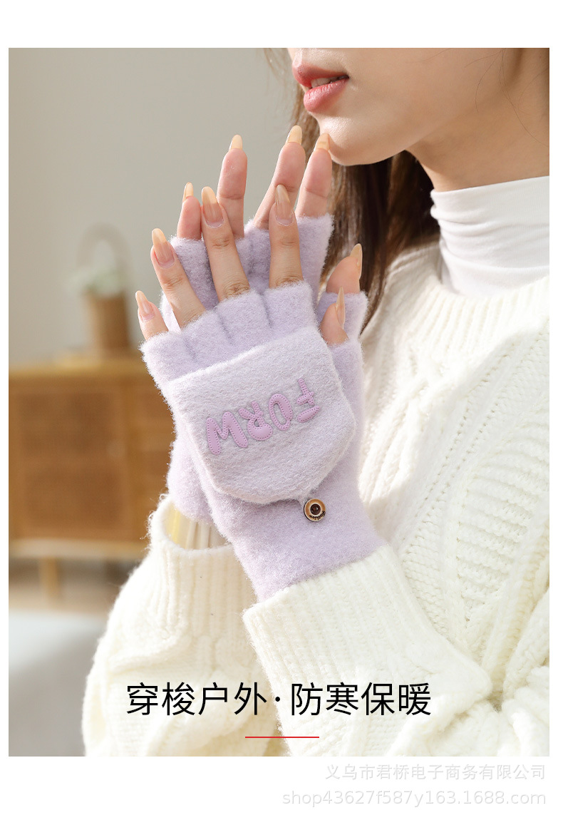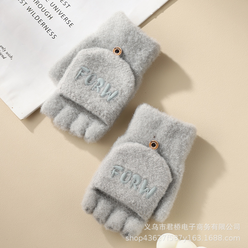 여성 성인을위한 새로운 반 손가락 플립 온 장갑 겨울 감기 방지 따뜻한 이슬 반 손가락 학생 서리 방지 수업 글쓰기