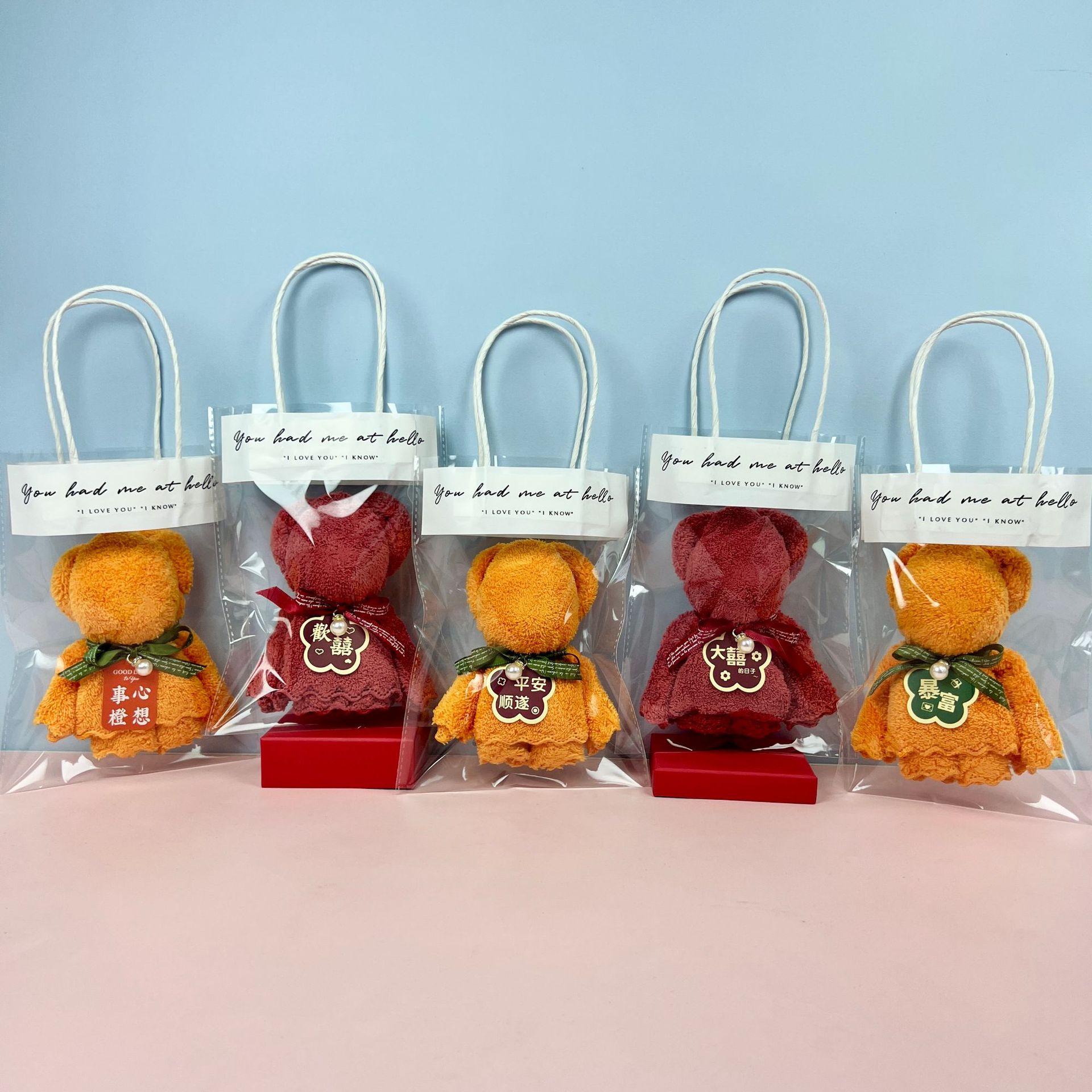 손으로 선물 수건 곰 모양 선물 상자 결혼식 행복 단어 결혼식 반환 선물 가게 활동 열기 작은 선물 사각형 수건스토어 가기