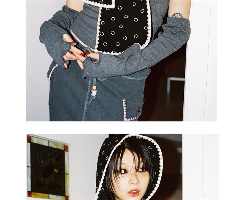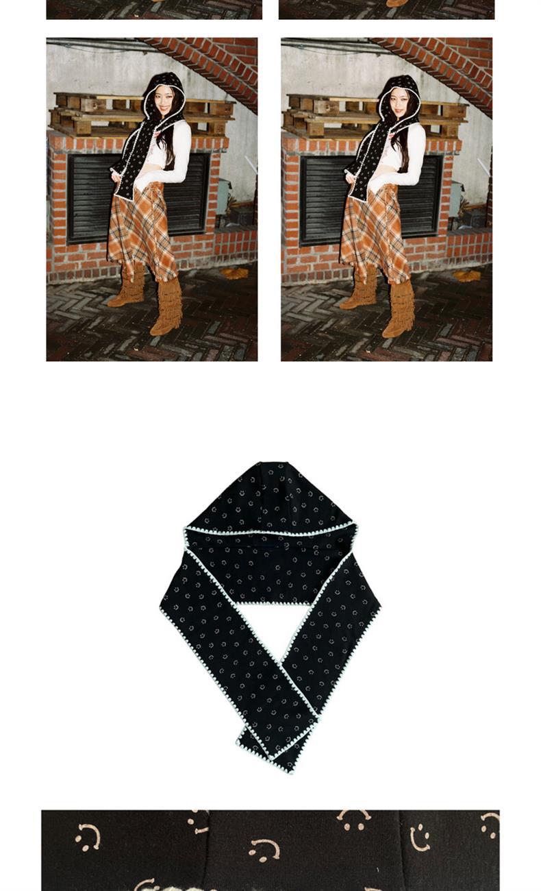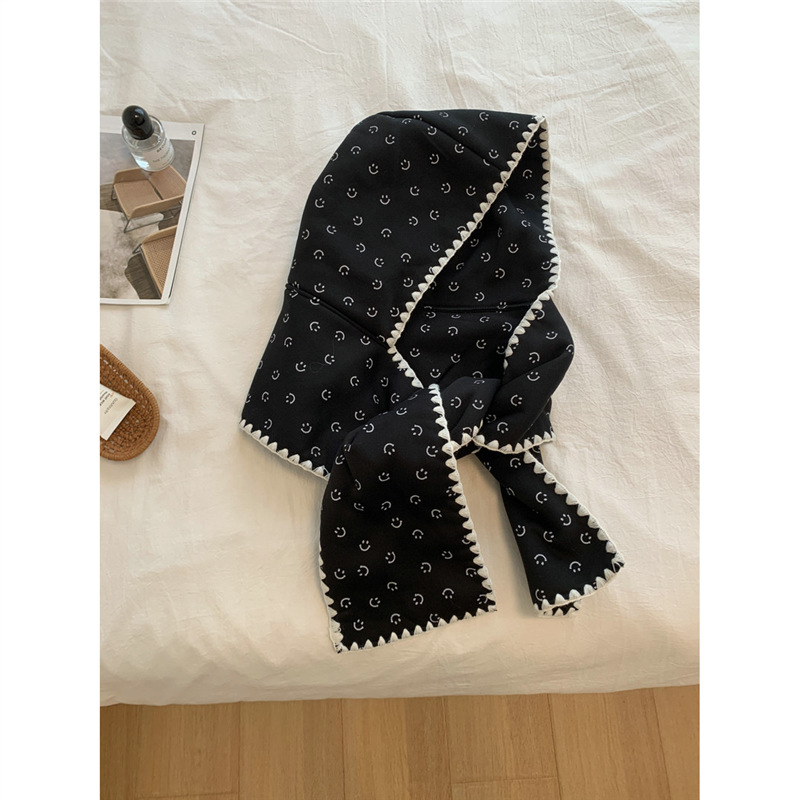 • 웃는 얼굴이 있는 후드 스카프 - 검정색