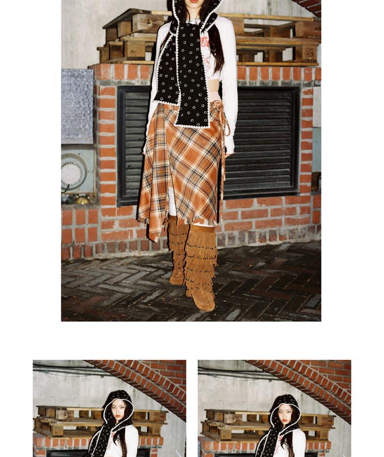 • 후드 스카프 리본 - 검정색