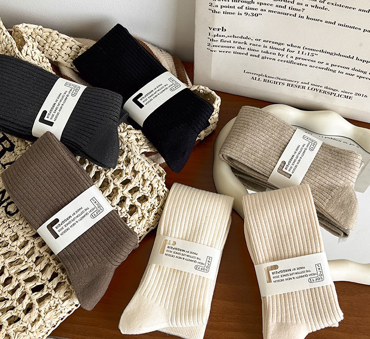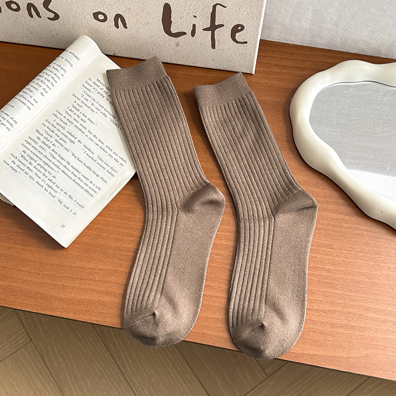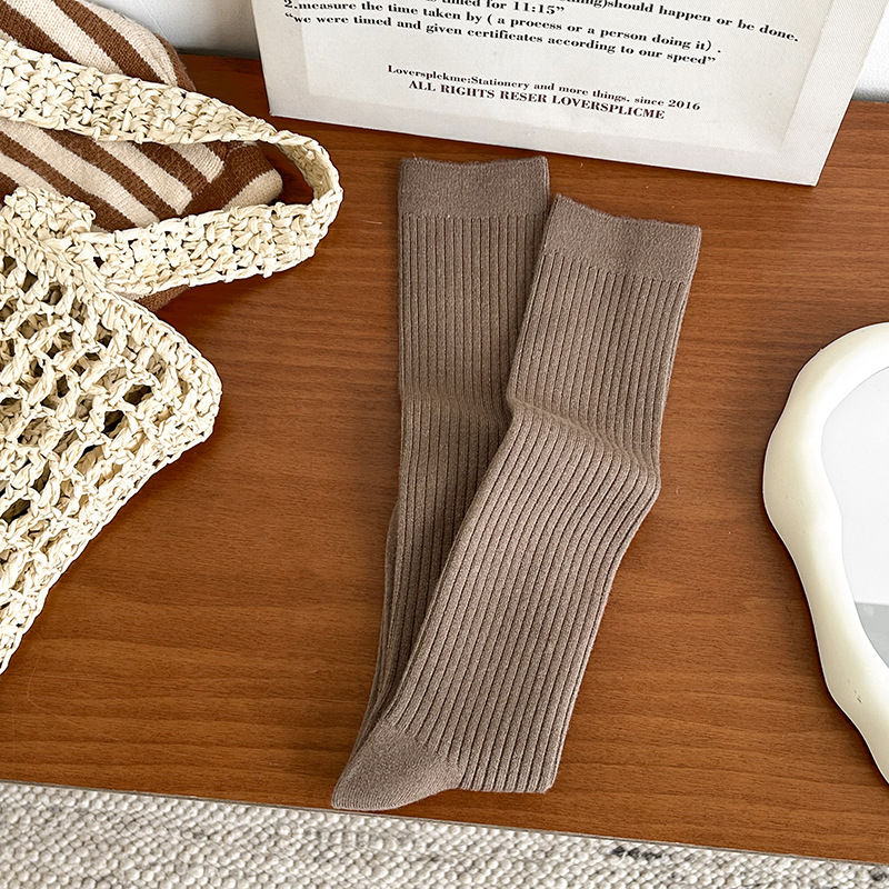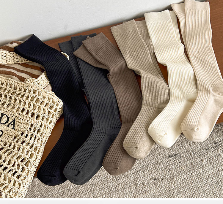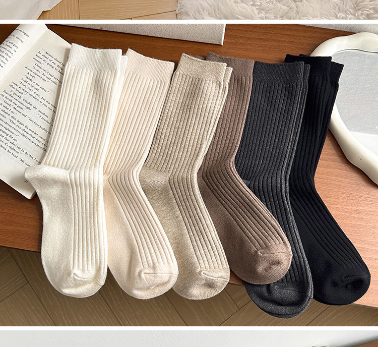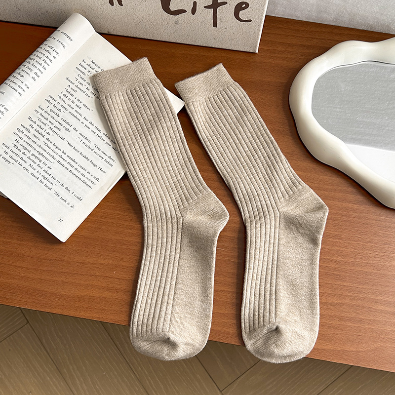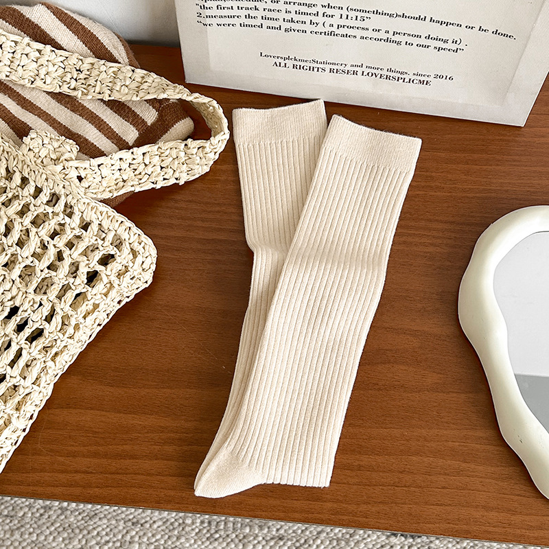 가을과 겨울 새로운 안티 필링 더블 니들 캐시미어 종아리 양말 여성의 미드 배럴 스트라이프 슬림 JK 무릎 길이 스타킹 오버 더 무릎 양말스토어 가기