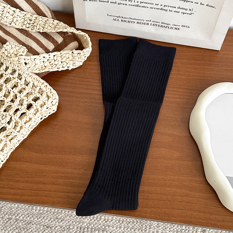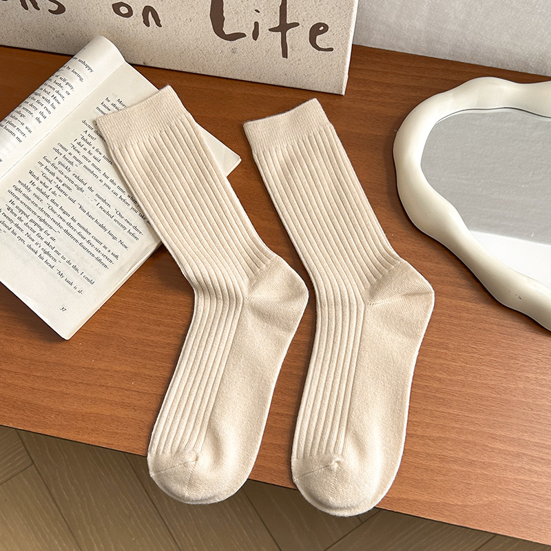 가을과 겨울 새로운 안티 필링 더블 니들 캐시미어 종아리 양말 여성의 미드 배럴 스트라이프 슬림 JK 무릎 길이 스타킹 오버 더 무릎 양말