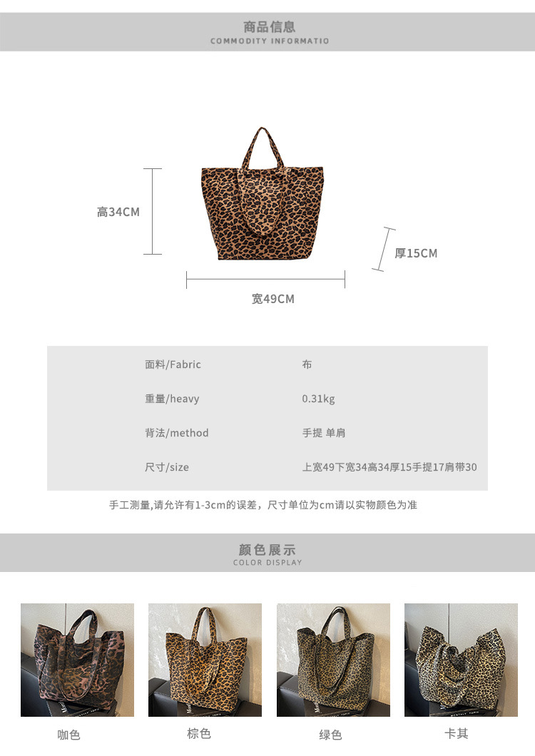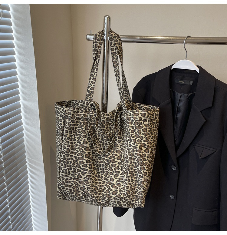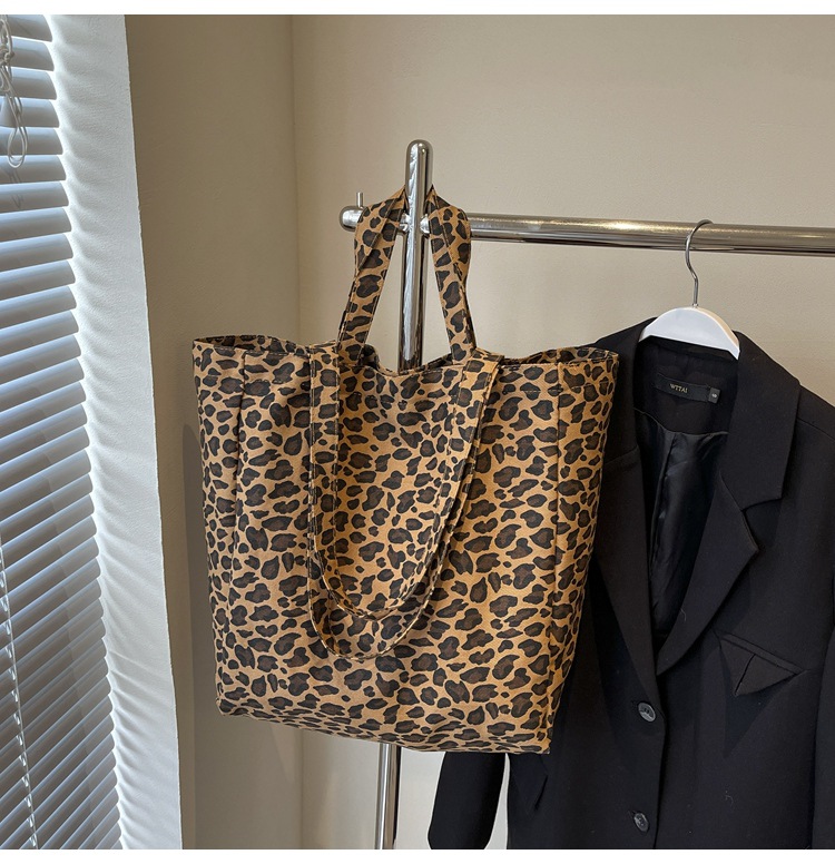 국경 간 레오파드 무늬 캔버스 통근 가방 여성의 2024 새로운 도착 유행 휴대용 대용량 어깨 가방 캐주얼 토트 백