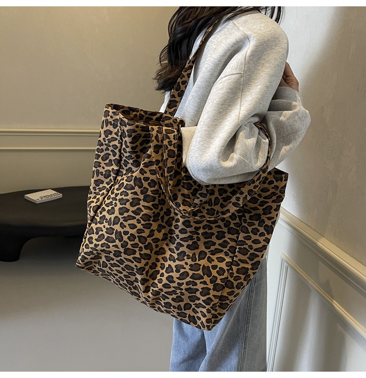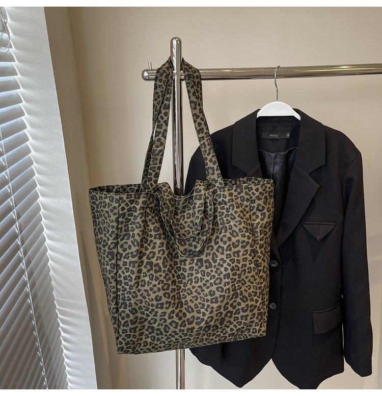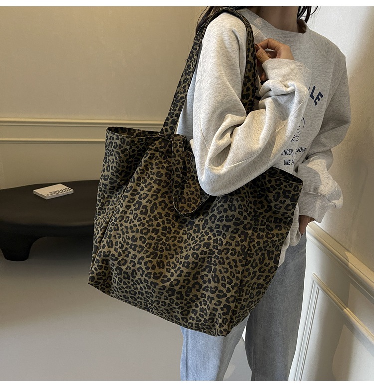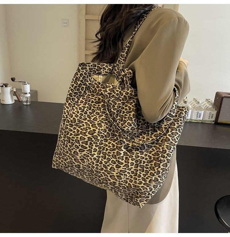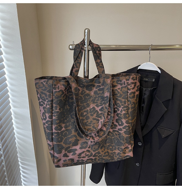 국경 간 레오파드 무늬 캔버스 통근 가방 여성의 2024 새로운 도착 유행 휴대용 대용량 어깨 가방 캐주얼 토트 백스토어 가기
