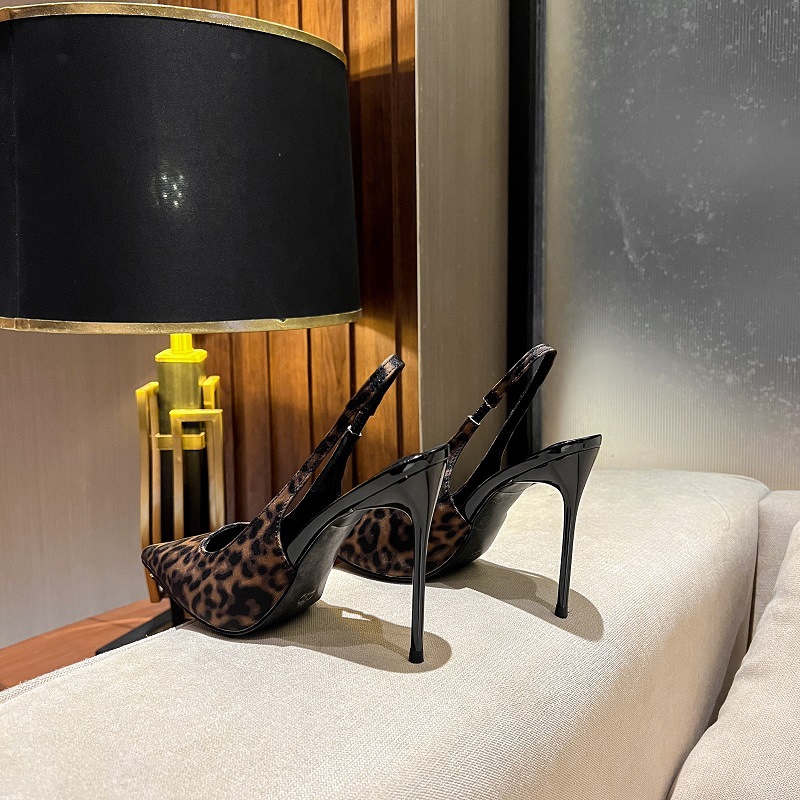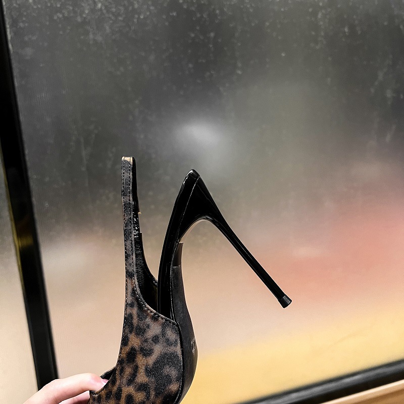 유럽과 미국의 아름다운 레오파드 무늬 하이힐 여성의 새로운 섹시한 얕은 입 뒷여행 Baotou 패션 샌들 여성용 스틸레토 힐