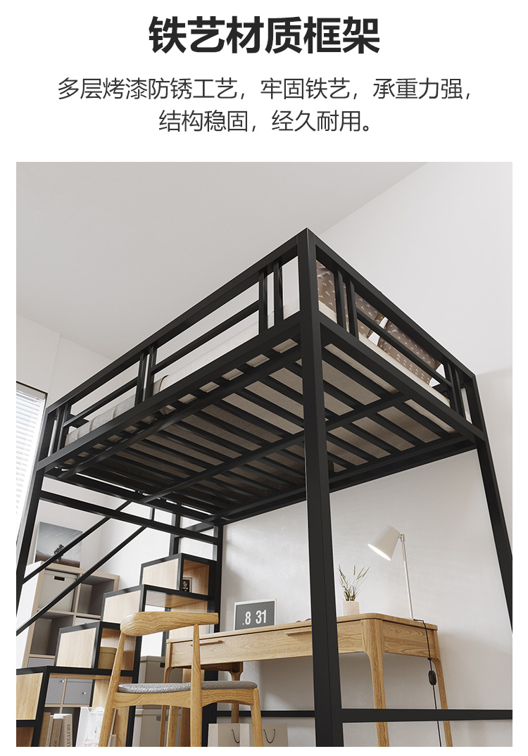 9U 아이언 로프트 침대 듀플렉스 2 층 침대 상부 더블 레이어 작은 아파트 공간 절약 로프트 아파트 높이