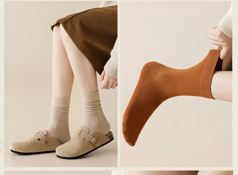 양말 여성의 중간 길이 양말 봄 및 가을 다크 브라운 작은 가죽 신발 Birkenneth 신발 여성용 가을 및 겨울 스타킹