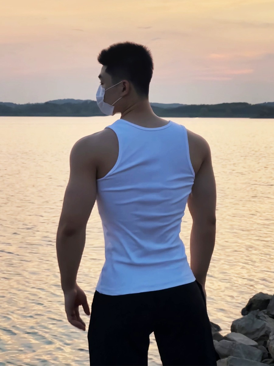 남성용 여름 조끼, 아이스 실크 두꺼운 스레드 스트리트 피트니스 스트레치 스포츠 슬림핏 레이서 컷 땀 흡수 근육 노출 트렌디 베이스스토어 가기