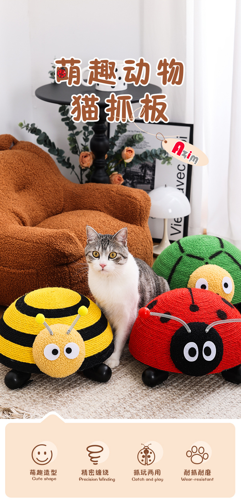 만화 캐릭터 디자인의 사자수 털로 만든 고양이 스크래치 보드, 내구성 좋고 부스러기 없는 소형 고양이 스크래치 기둥, 고양이 자가 놀이 장난감 공, 발톱 갈이 도구스토어 가기