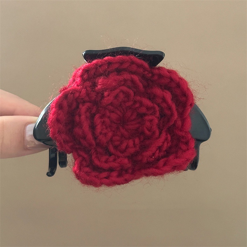 양모 붉은 꽃 잡아 클립 새로운 축제 상어 클립 헤어 액세서리 가을과 겨울 분위기 머리 꽃 여성스토어 가기