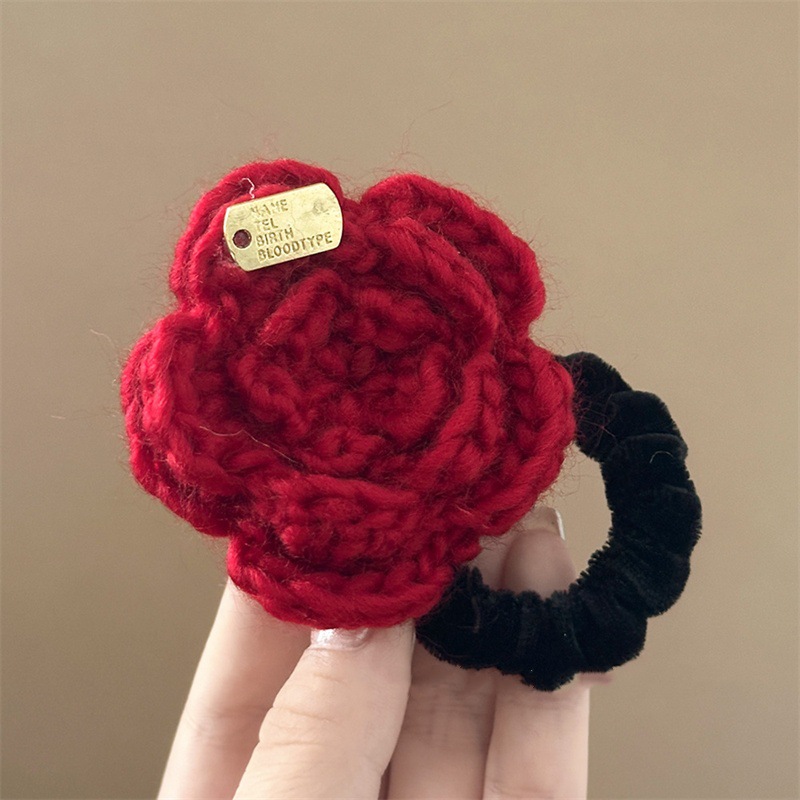 • 레드 니트 로즈 머리끈