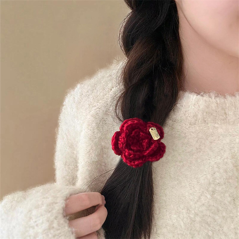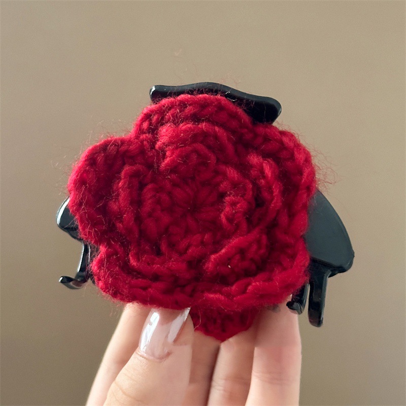 양모 붉은 꽃 잡아 클립 새로운 축제 상어 클립 헤어 액세서리 가을과 겨울 분위기 머리 꽃 여성