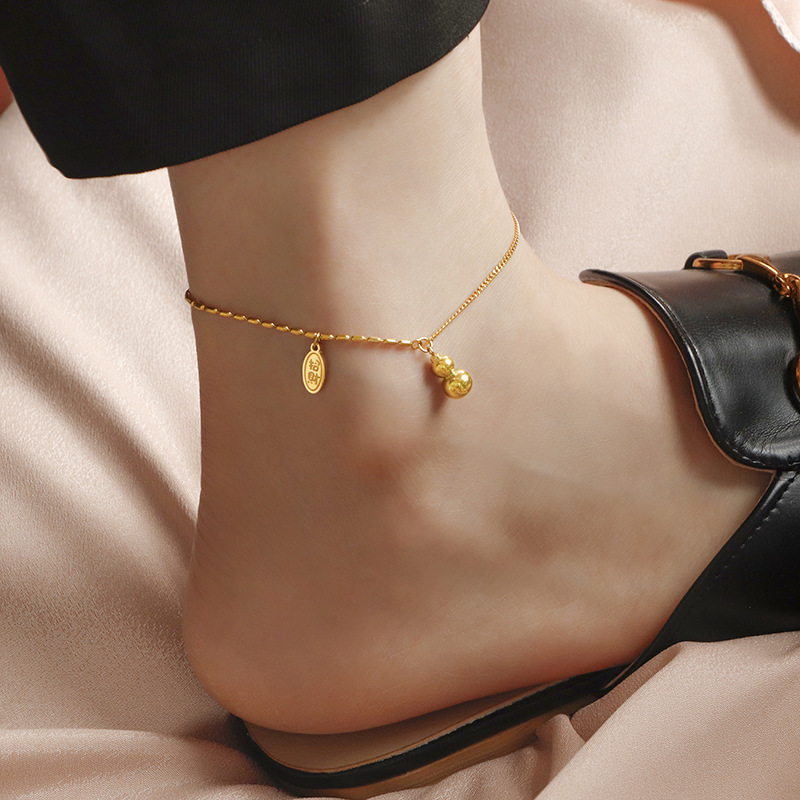 2024 새로운 스타일 팔찌 일본과 한국 티타늄 스틸 행운의 라운드 브랜드 발목 여성용 틈새 색상없는 작은 조롱박 펜던트 발목스토어 가기