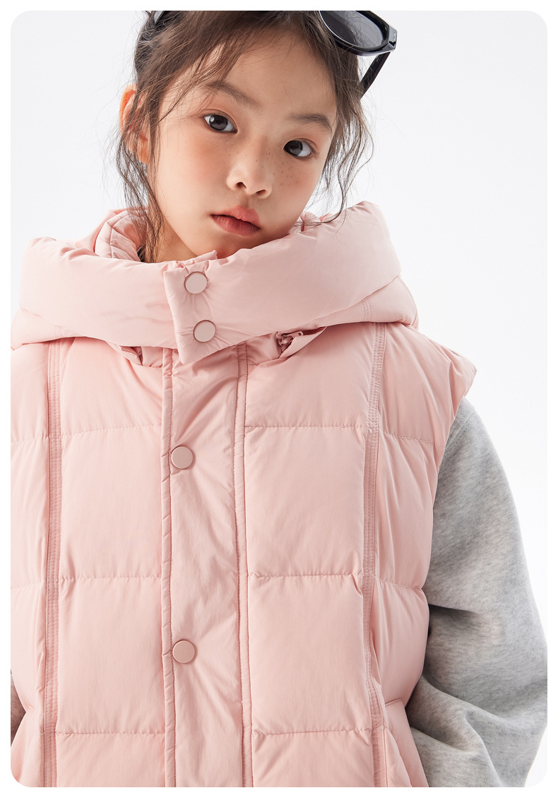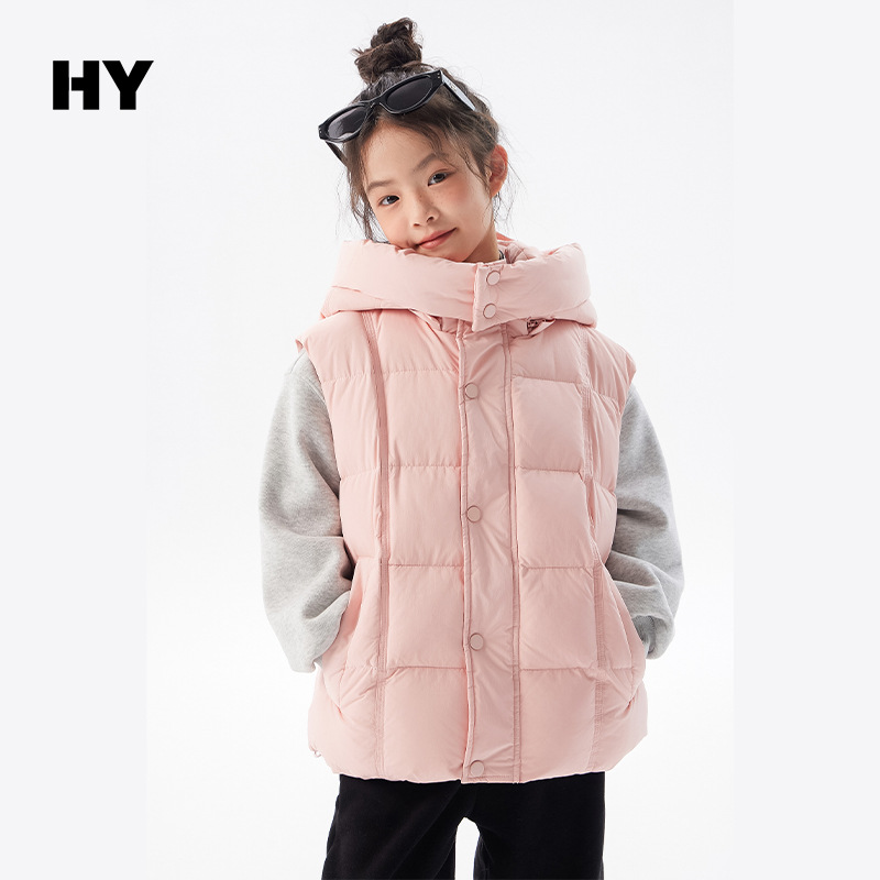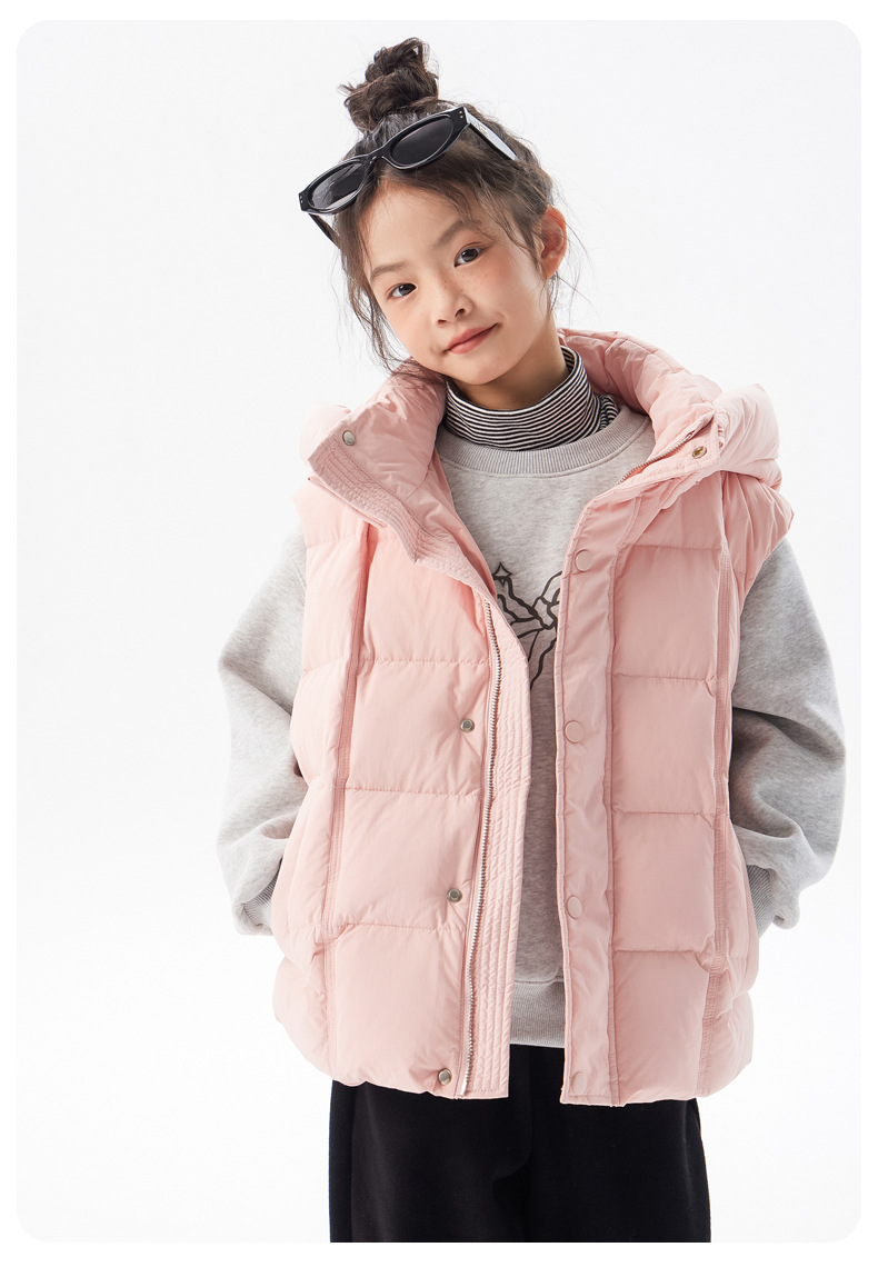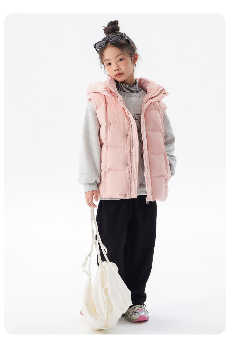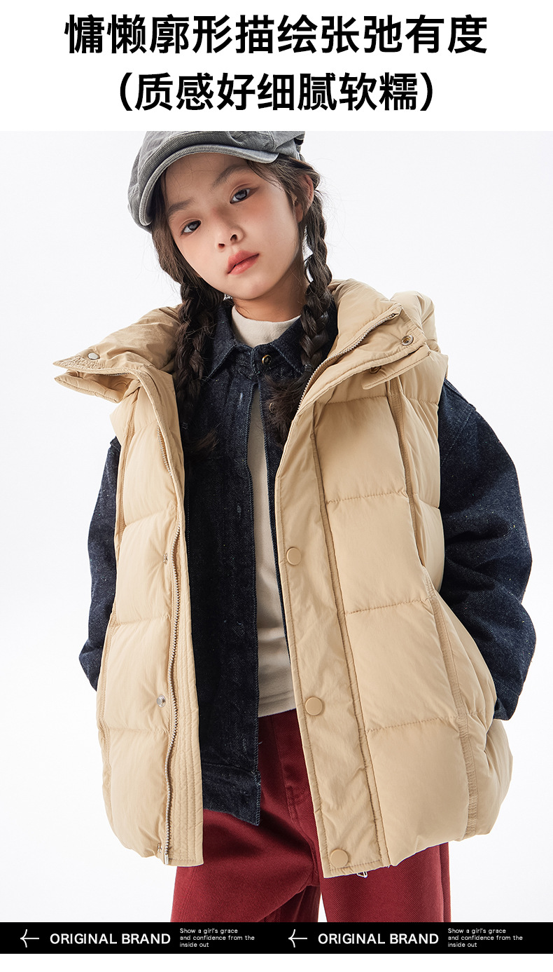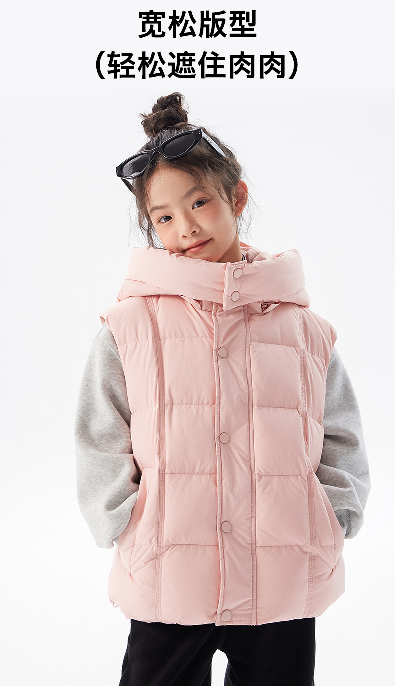 아동용 두꺼운 다운 조끼 2025 겨울 새 스타일 소녀 한국 스타일 후드 민소매 재킷 중대형 아동 가을 겨울 의류스토어 가기