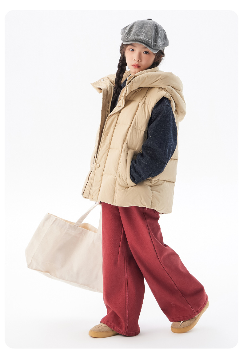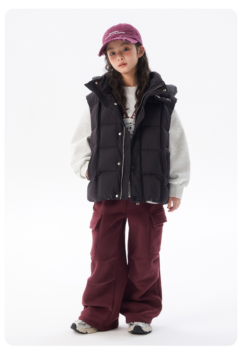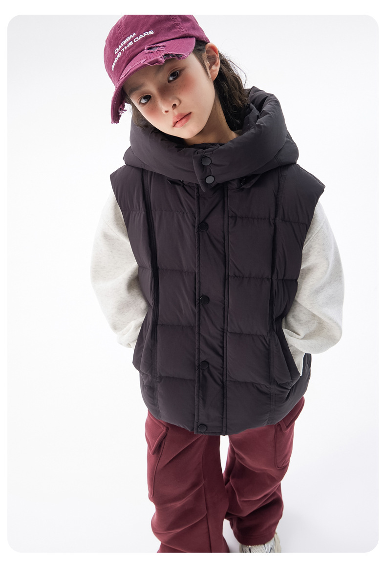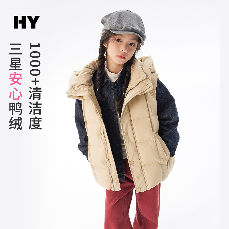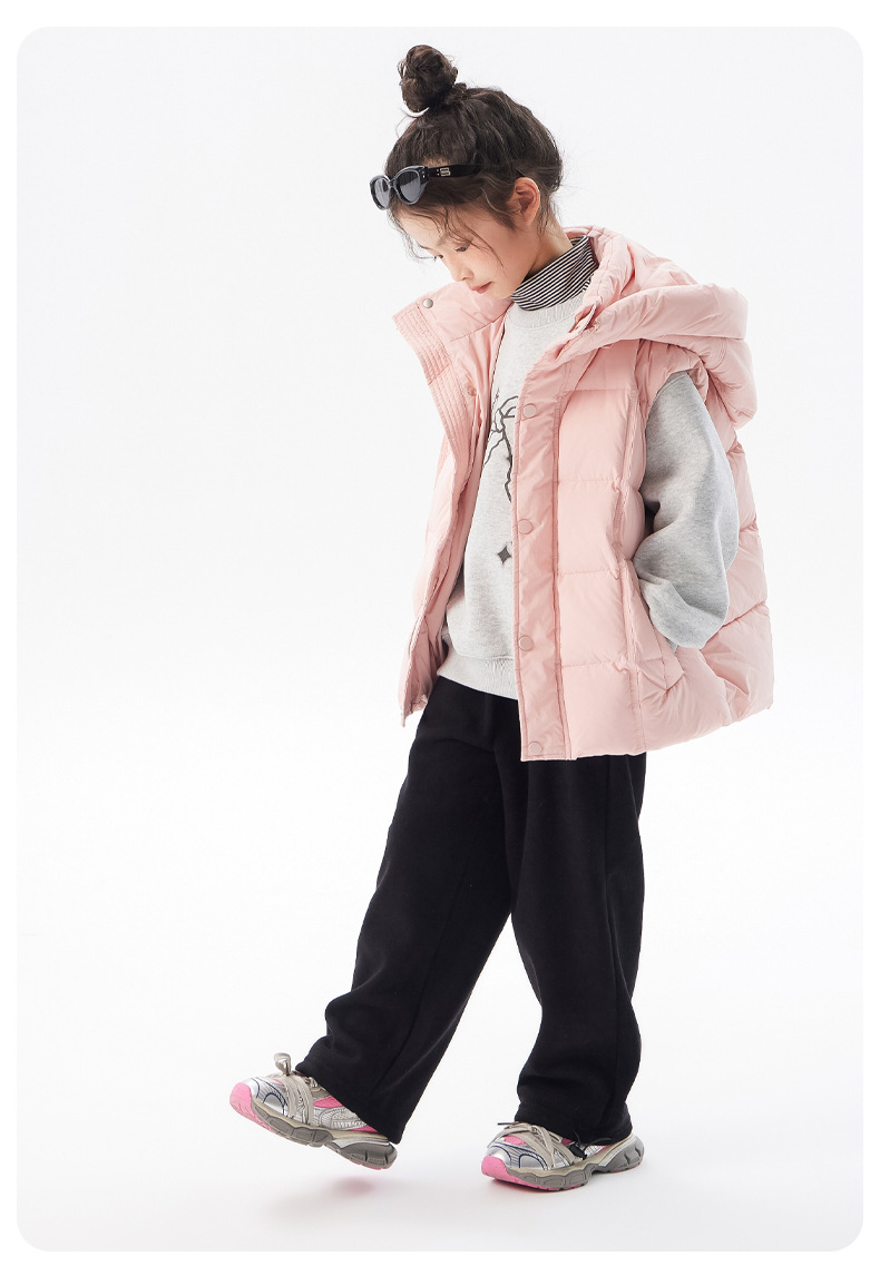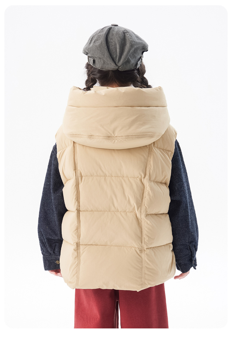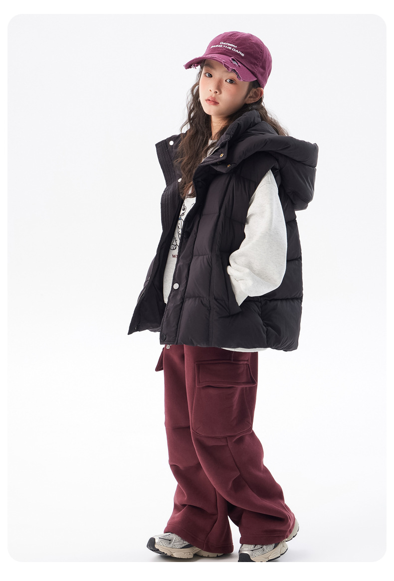 아동용 두꺼운 다운 조끼 2025 겨울 새 스타일 소녀 한국 스타일 후드 민소매 재킷 중대형 아동 가을 겨울 의류스토어 가기