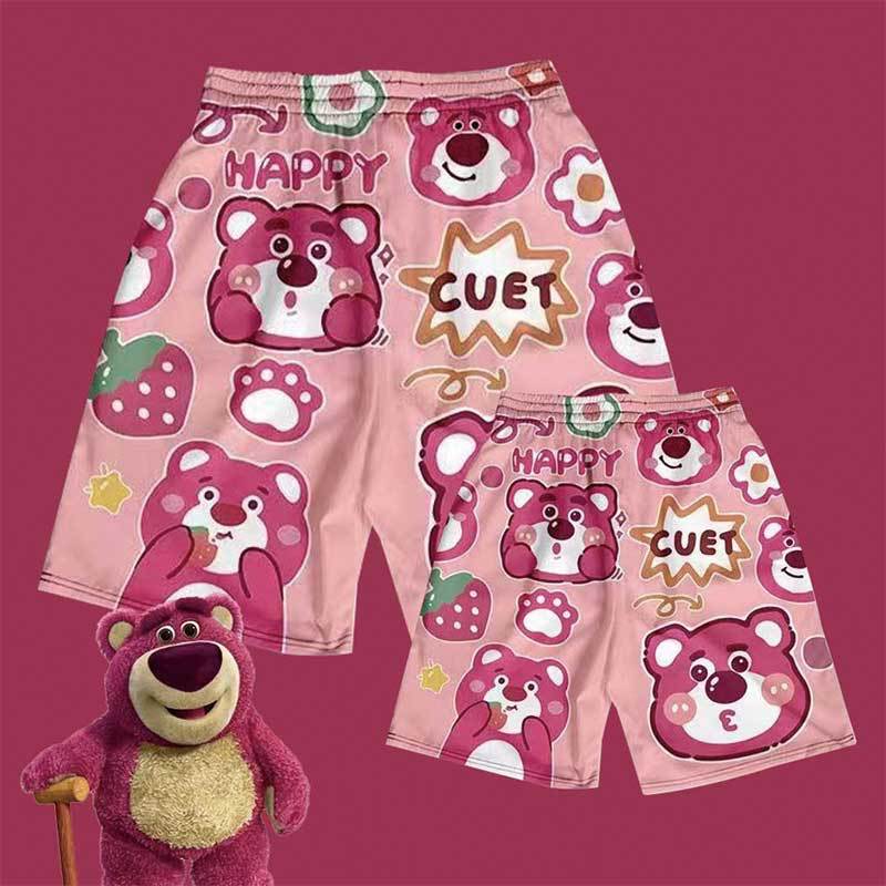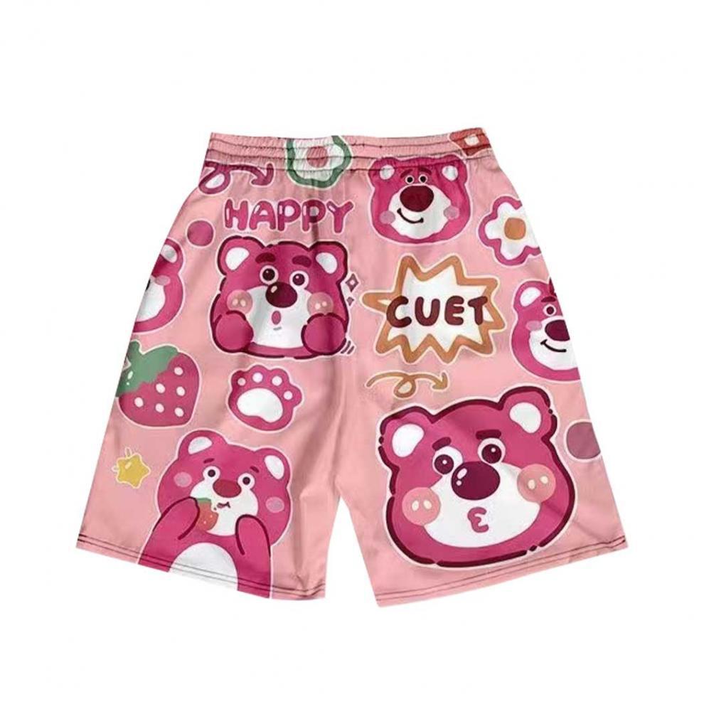 딸기 곰 공동 새로운 스포츠 반바지 남녀 느슨한 5 점 얇은 빠른 건조 캐주얼 비치 바지 커플 여름