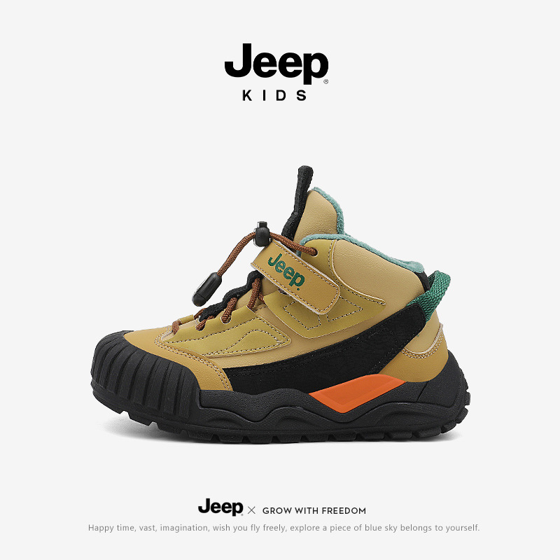 지프 어린이 스포츠 신발 겨울 소년 신발 벨크로 플러스 벨벳 2024 새로운 면화 가죽 어린이 신발