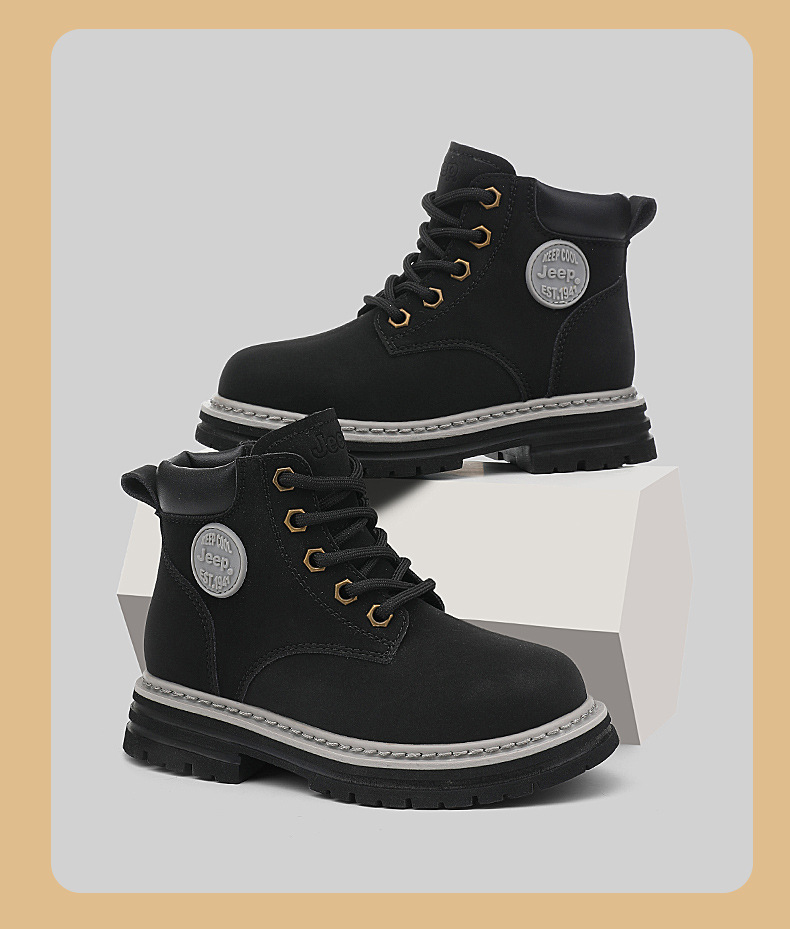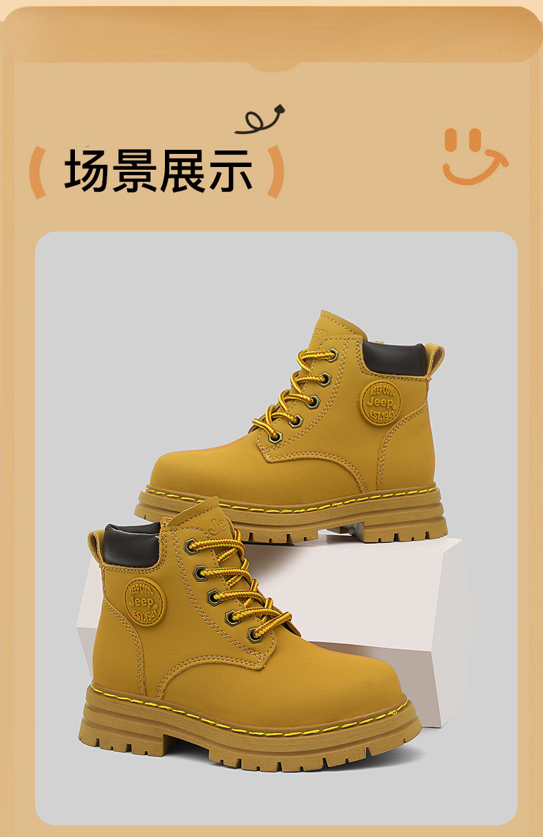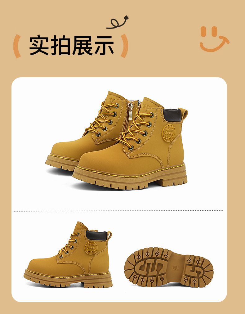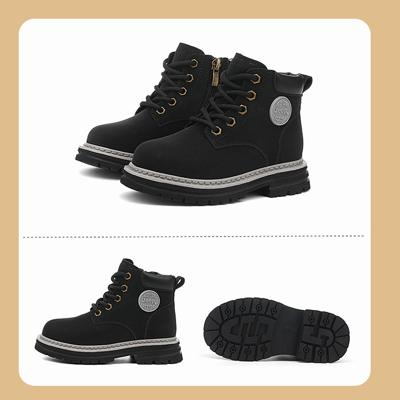 지프 어린이용 마틴 부츠 여아용 블랙 어린이 신발 겨울 부츠 2025 신상 야외 가죽 부츠 남아용 빅 옐로우 부츠