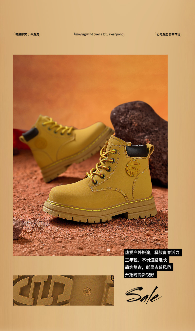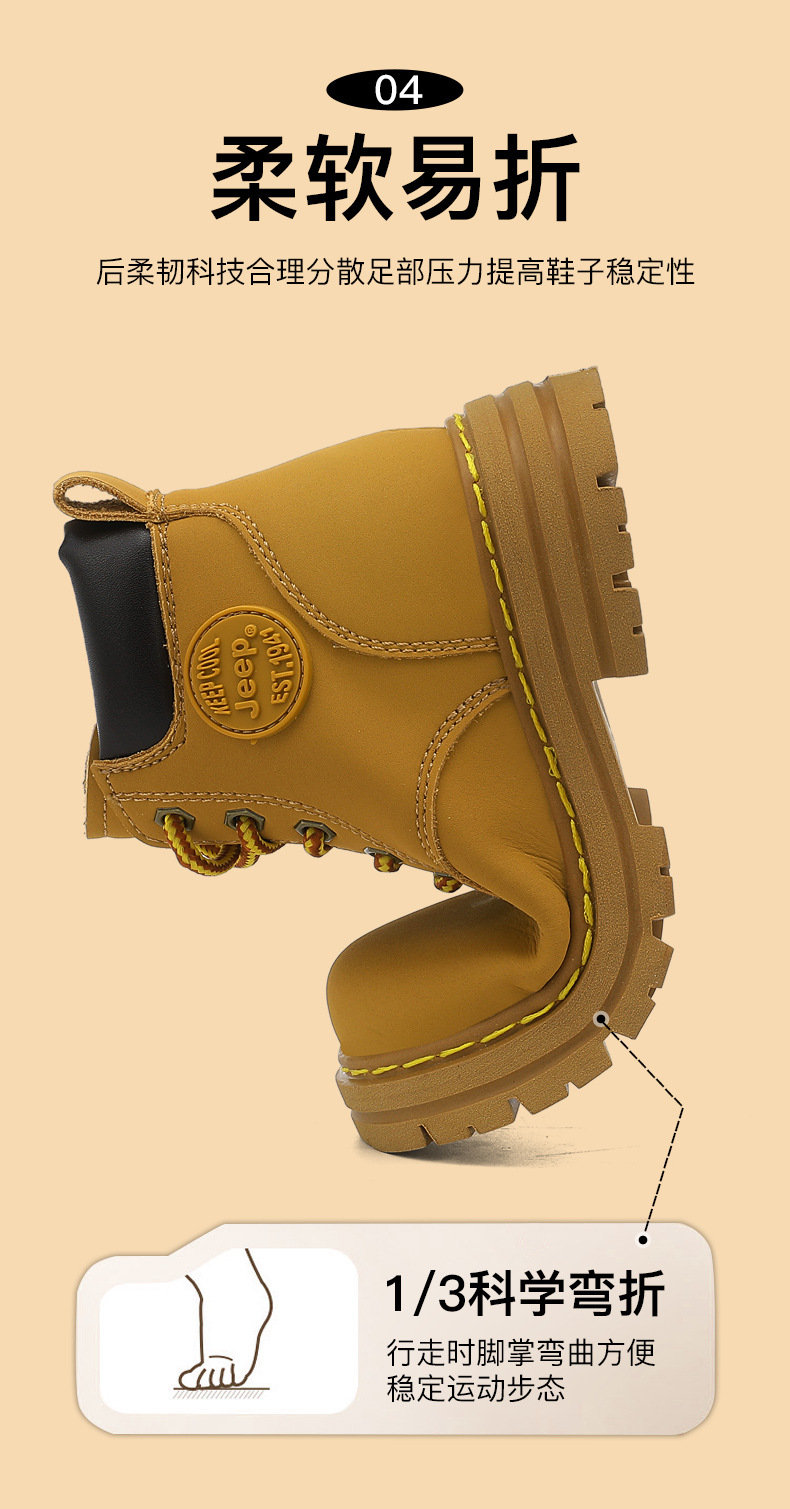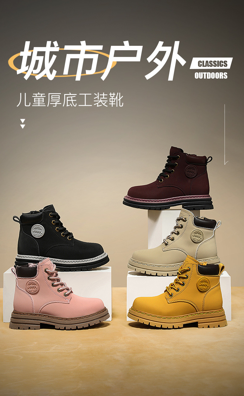 지프 어린이용 마틴 부츠 여아용 블랙 어린이 신발 겨울 부츠 2025 신상 야외 가죽 부츠 남아용 빅 옐로우 부츠