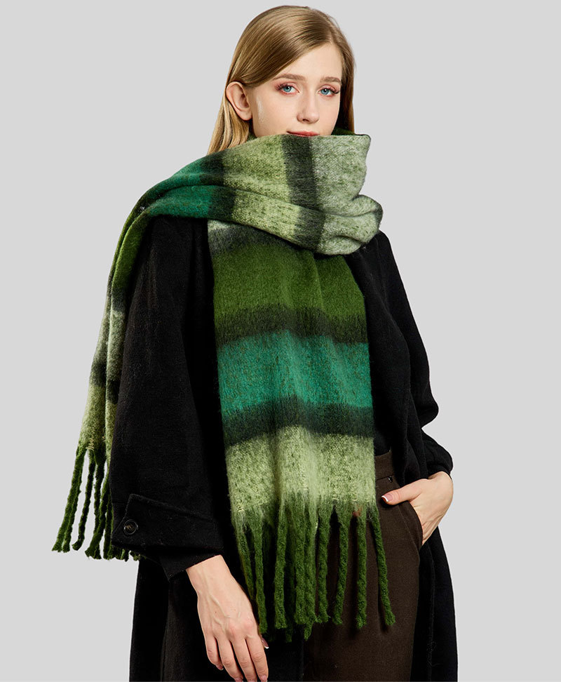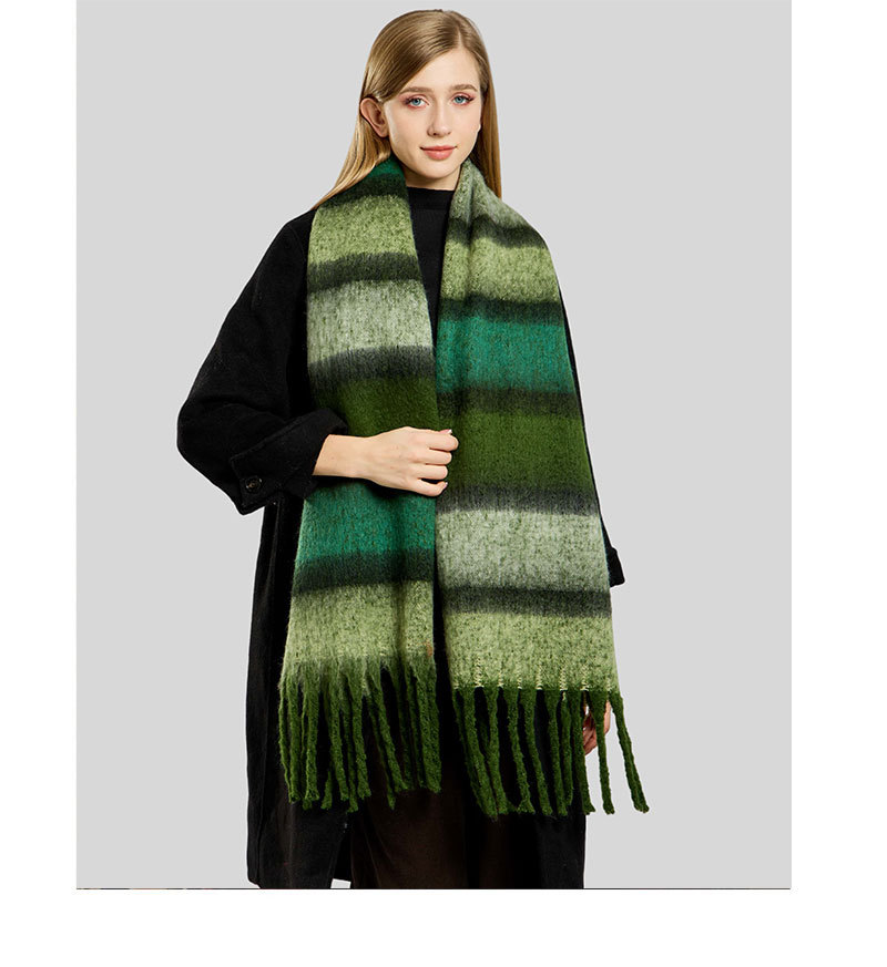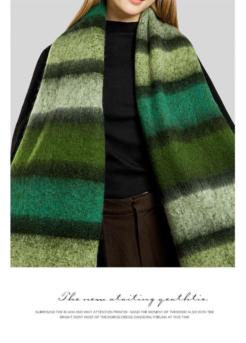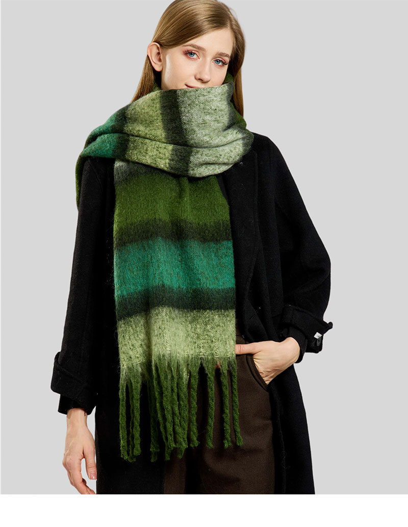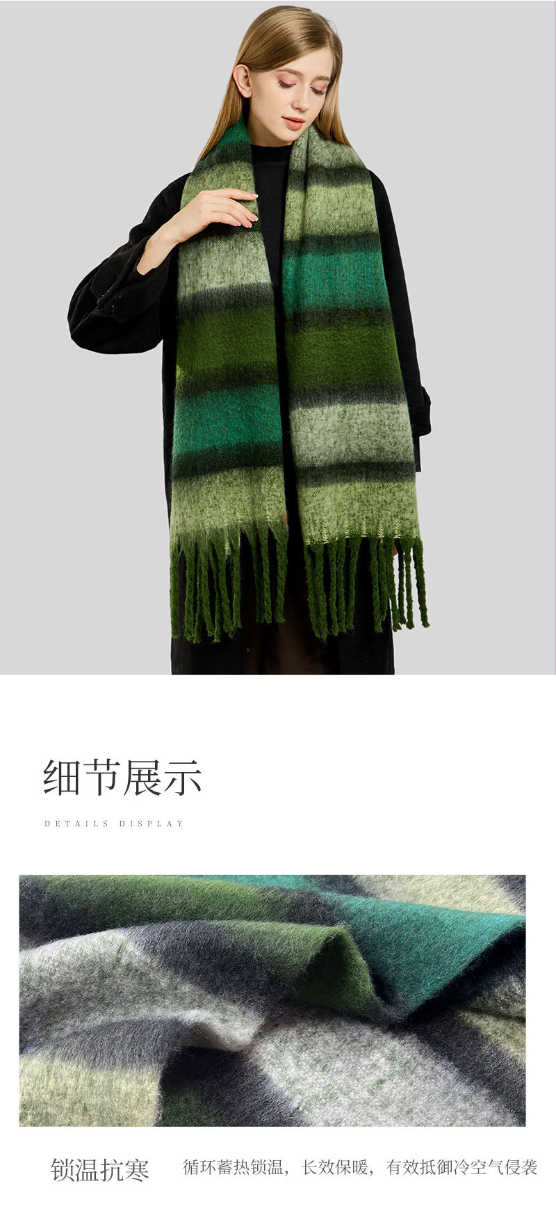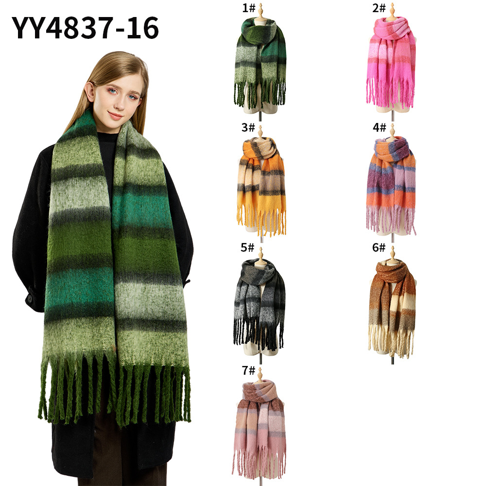 한국 스타일 배색 스트라이프 프린지 스카프 여성용 가을 겨울 고급스러운 모헤어 컬러풀 따뜻한 다용도 목도리 숄