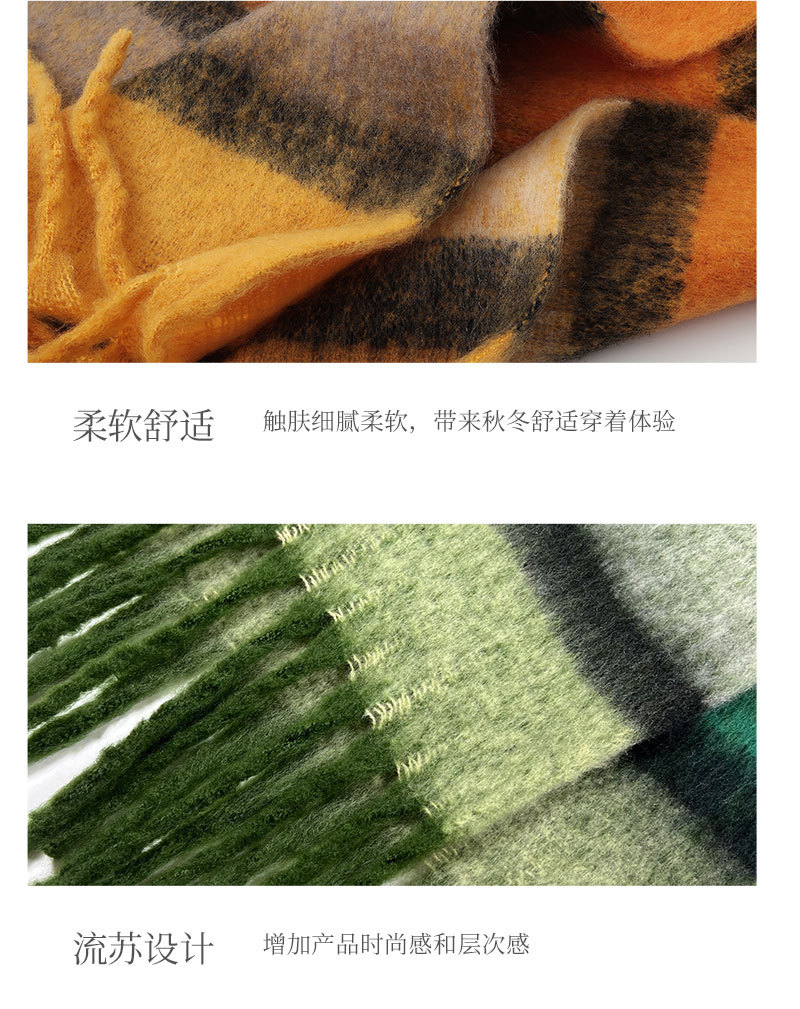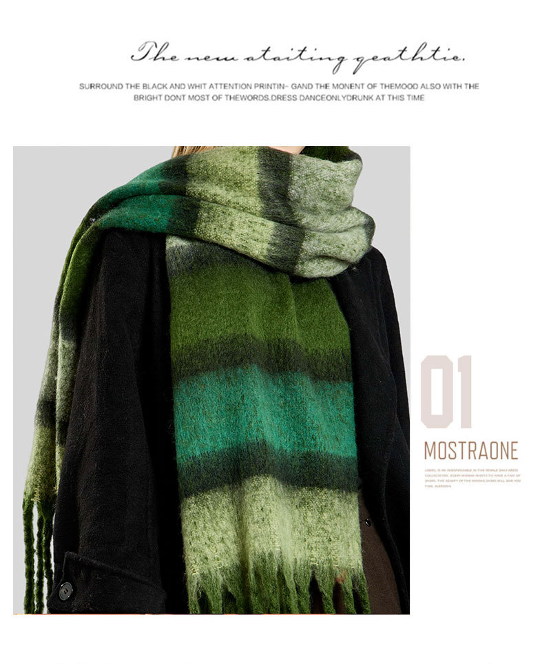 한국 스타일 배색 스트라이프 프린지 스카프 여성용 가을 겨울 고급스러운 모헤어 컬러풀 따뜻한 다용도 목도리 숄스토어 가기