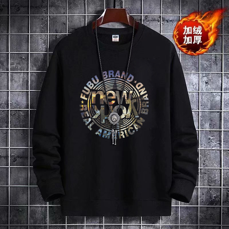 홍콩 스타일 스웨트 셔츠 남성 가을 겨울 기모 캐주얼 아메리칸 스타일 하이 스트리트 패션 브랜드 커플의 크루 넥 탑 T 코트