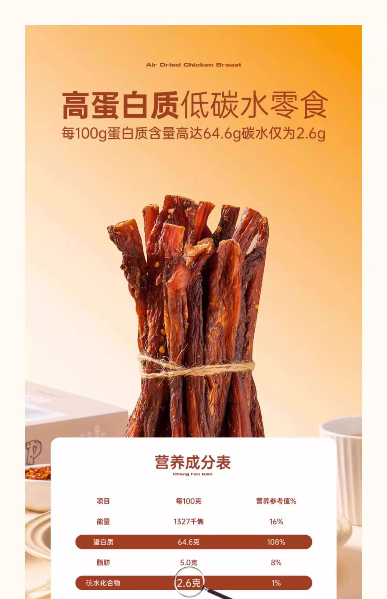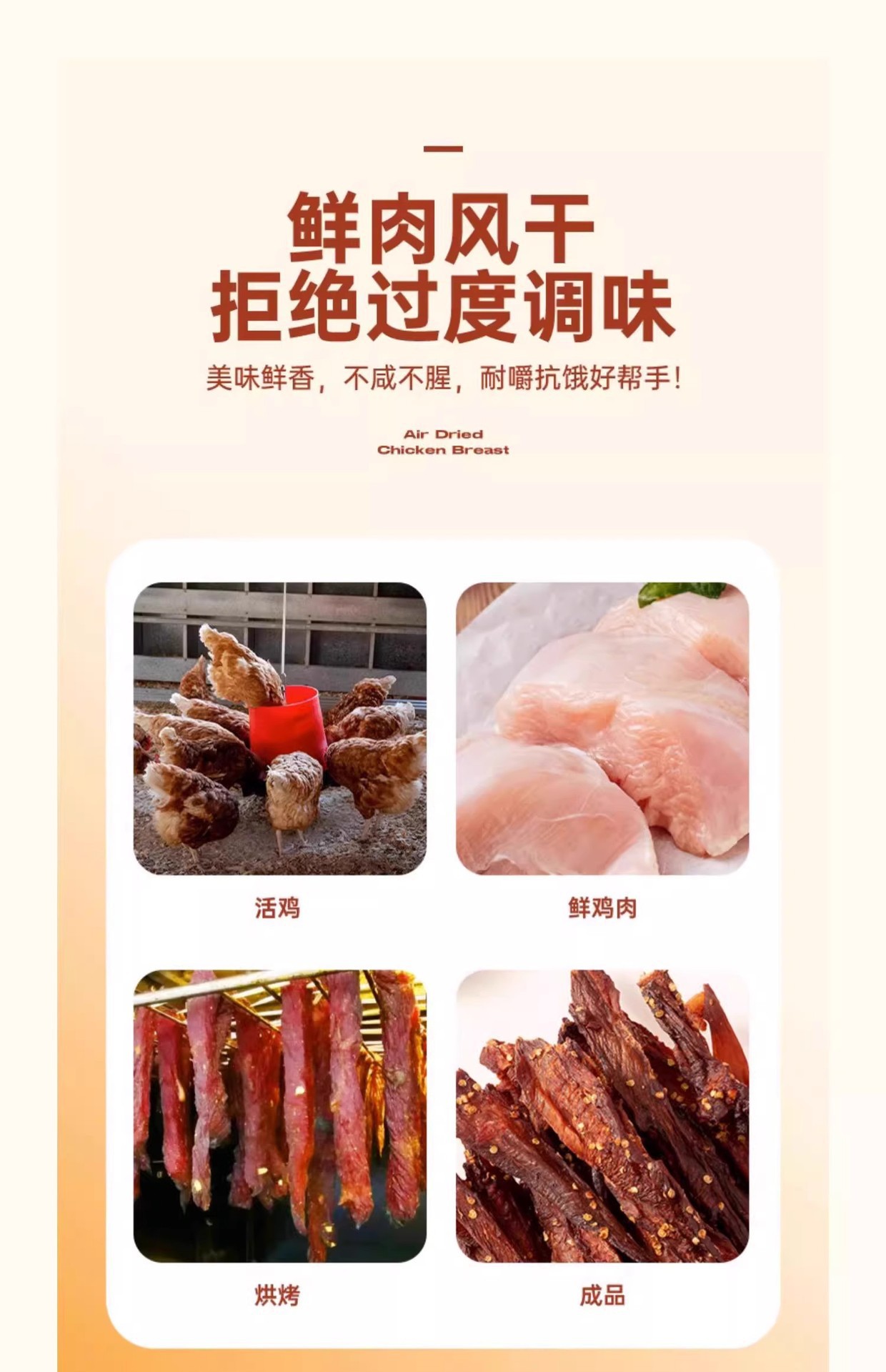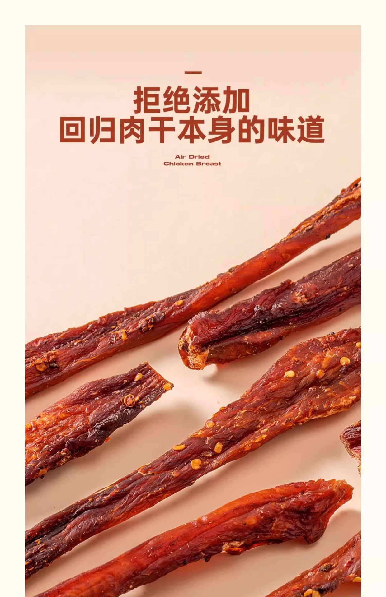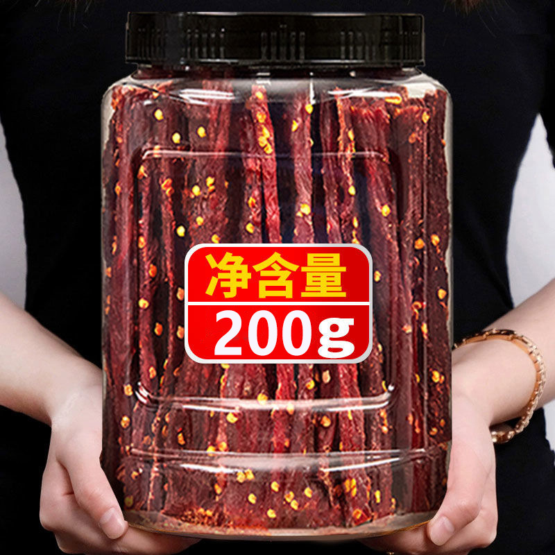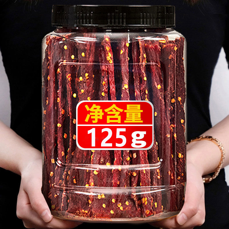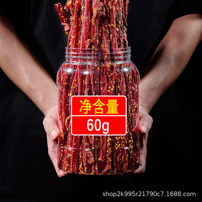 손으로 찢은 닭 가슴살 육포 피트니스 간식 공기 말린 닭고기 육포 큰 항아리 먹을 준비가 된 매운 닭고기 음식 고기 도매