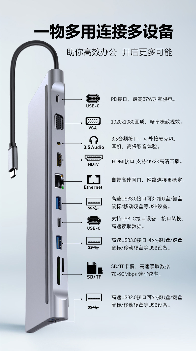 TYPE-C 11-in-one 올인원 도킹 스테이션 국경 간 소스 유형 c-HDMI HD 허브 허브스토어 가기