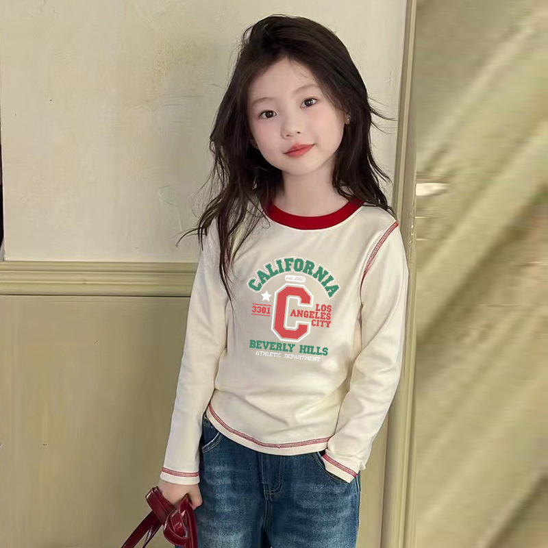 도매 국경 소녀 면화 긴팔 티셔츠 가을과 겨울 소녀 아기 서양식 라운드 넥 탑 아동베이스 셔츠 조수스토어 가기