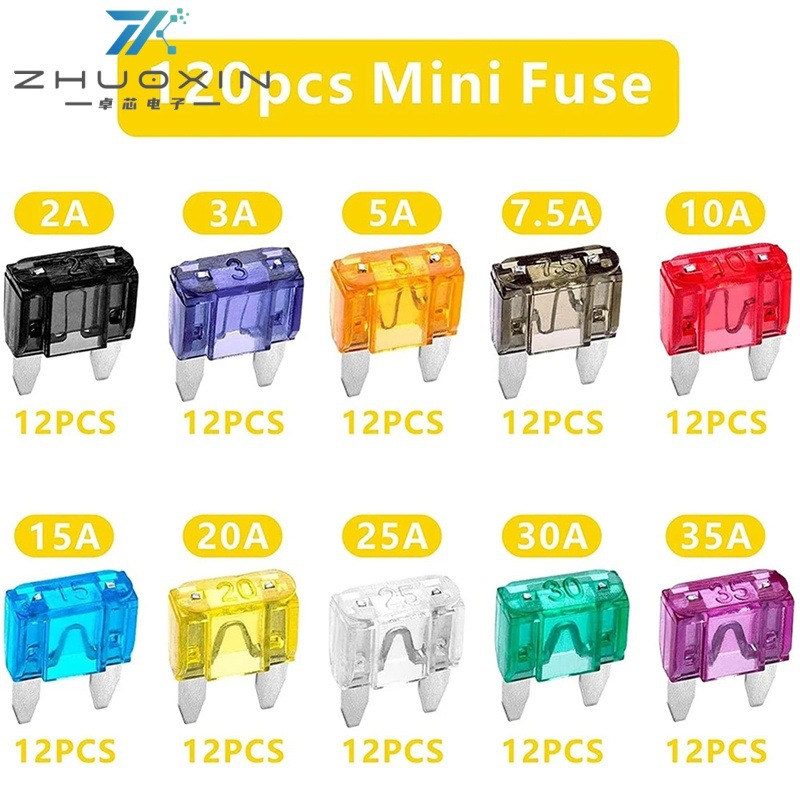 120PCS 2A-35A 스몰 사이즈 자동차 퓨즈 10 사양 점화 헤드 라이트 에어컨 퓨즈 튜브 클립스토어 가기
