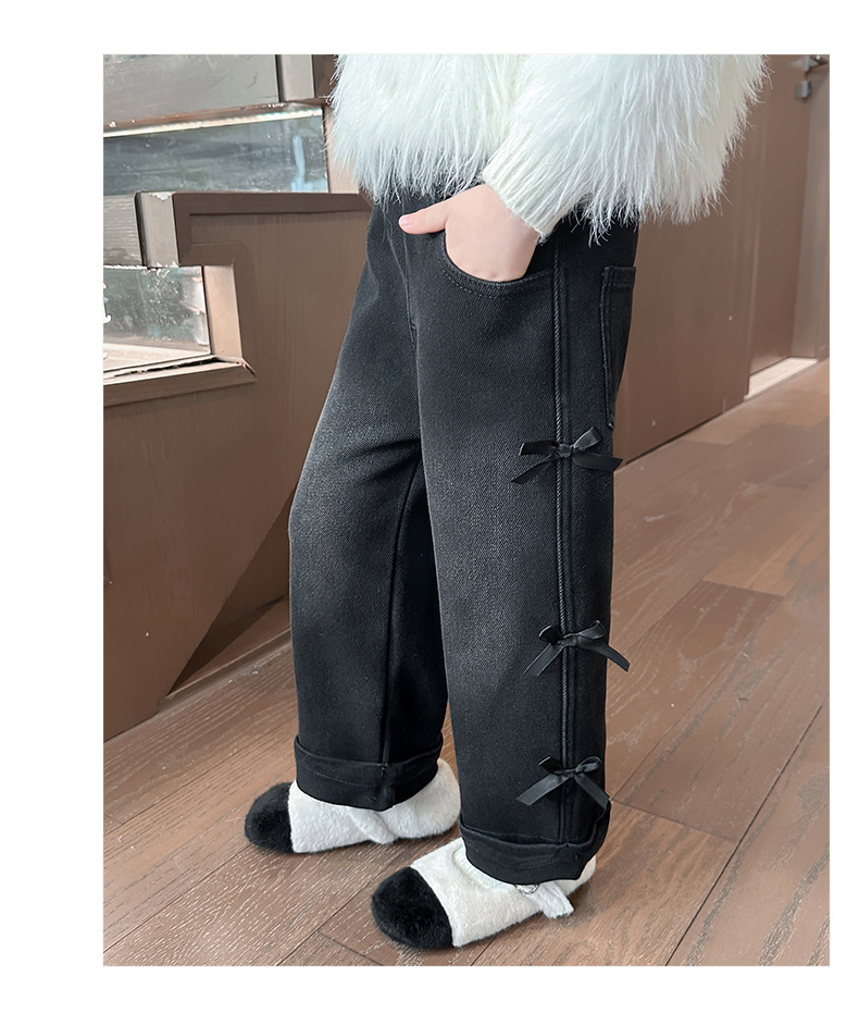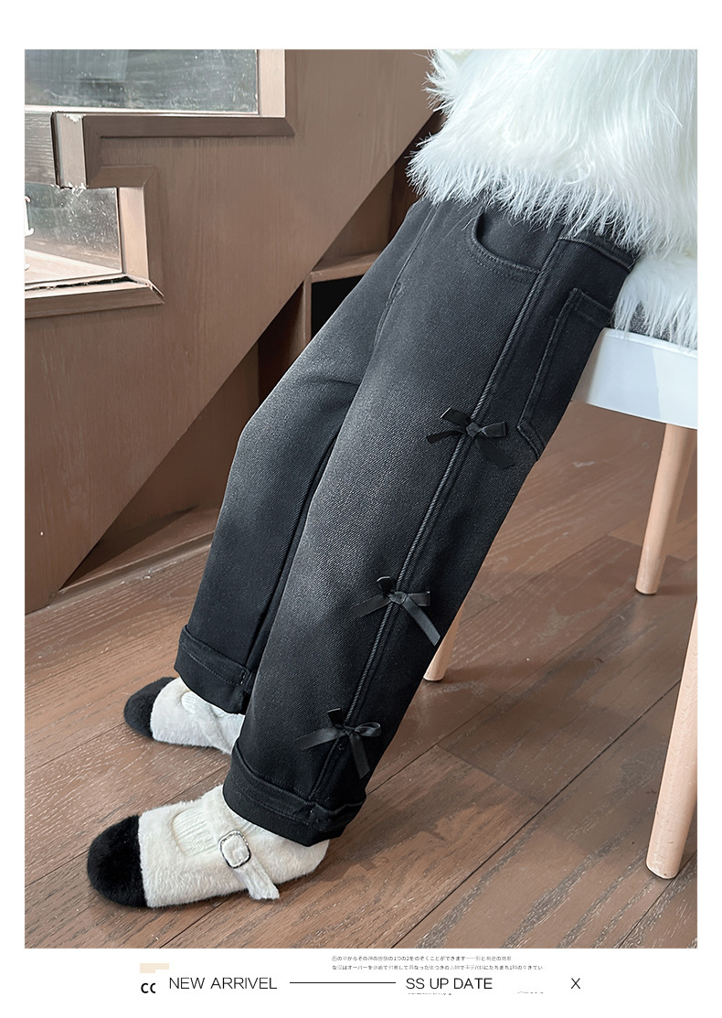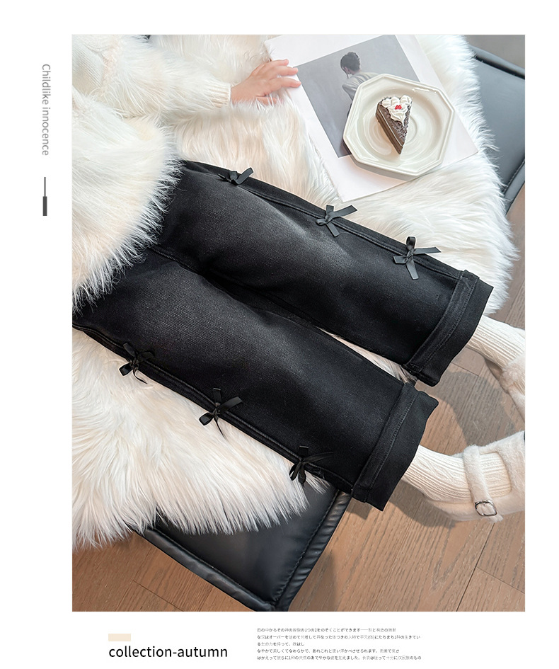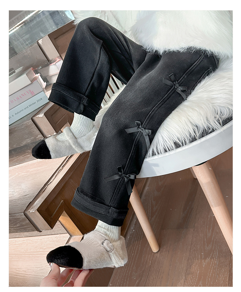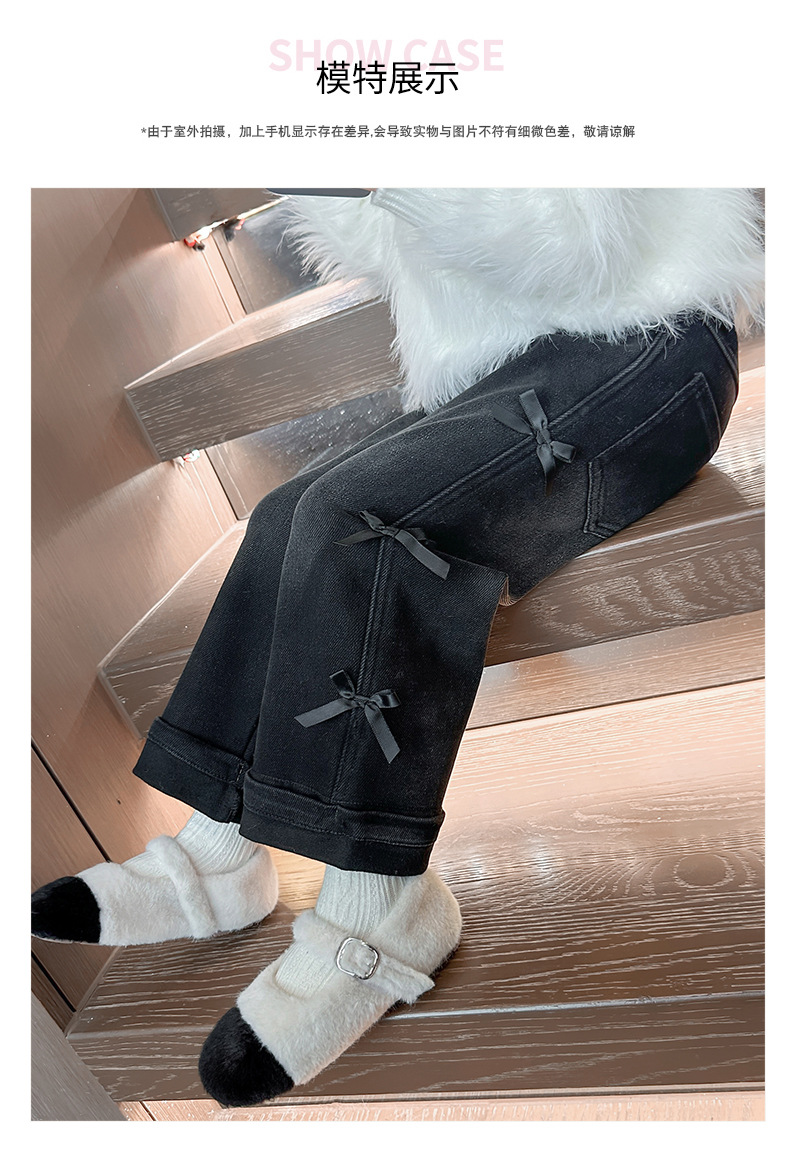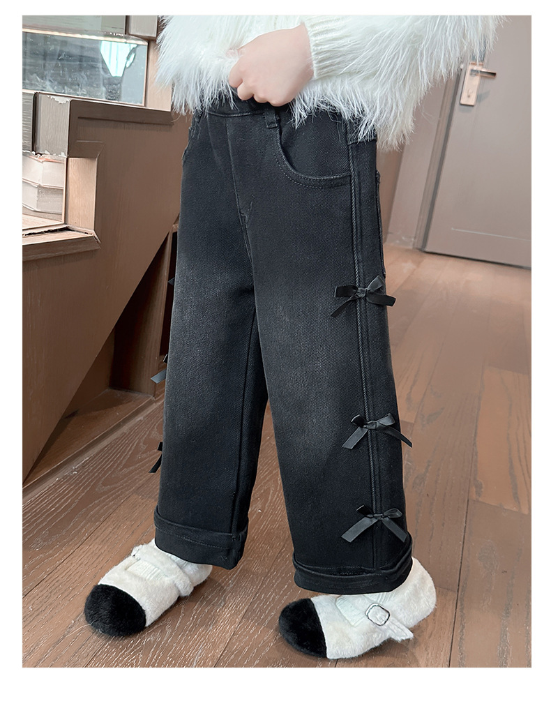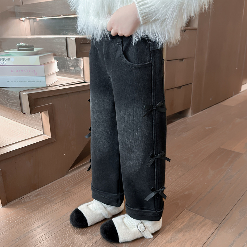 여자 겨울 기모 두꺼운 청바지 2024 새로운 스트레이트 튜브 느슨한 원피스 벨벳 넓은 다리 바지스토어 가기