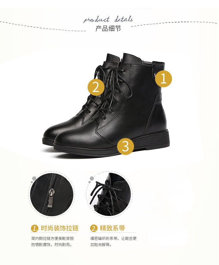 낮은 발 뒤꿈치 편안한 마틴 부츠 기모 따뜻한 짧은 부츠 방수 올 매치 가죽 부츠 2024 겨울 미끄럼 방지 코튼 신발