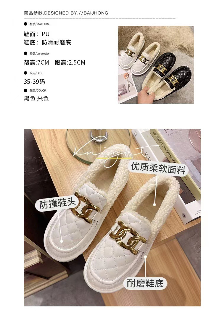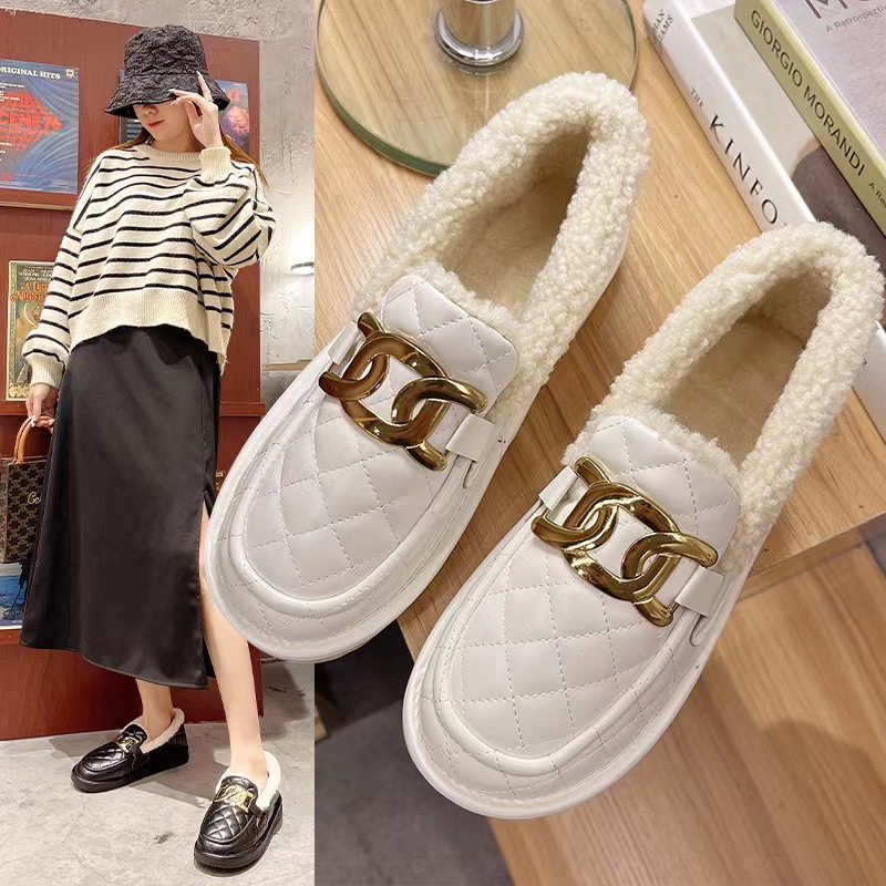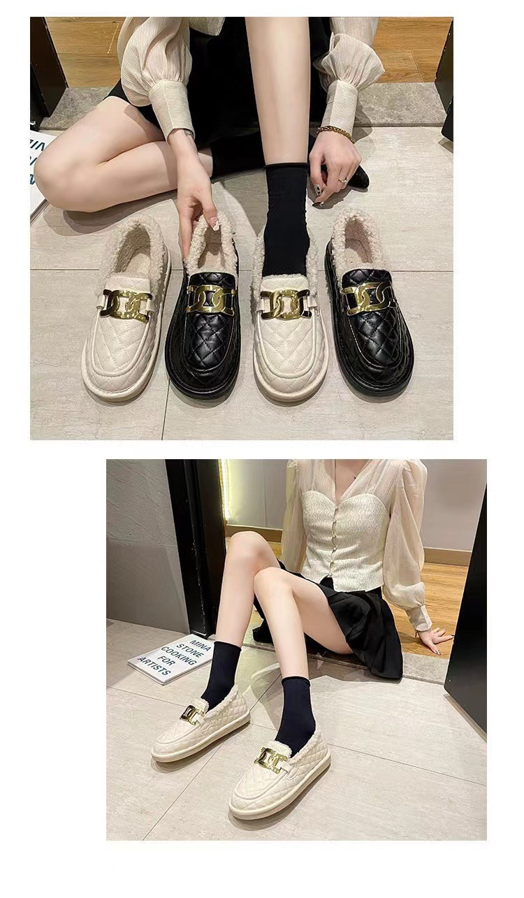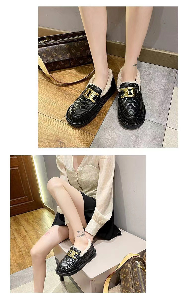 코튼 신발 여성 24 년 겨울 새로운 여성 코튼 신발 콩 신발 기모 따뜻한 여성 신발 로퍼 여성 제조 업체 도매