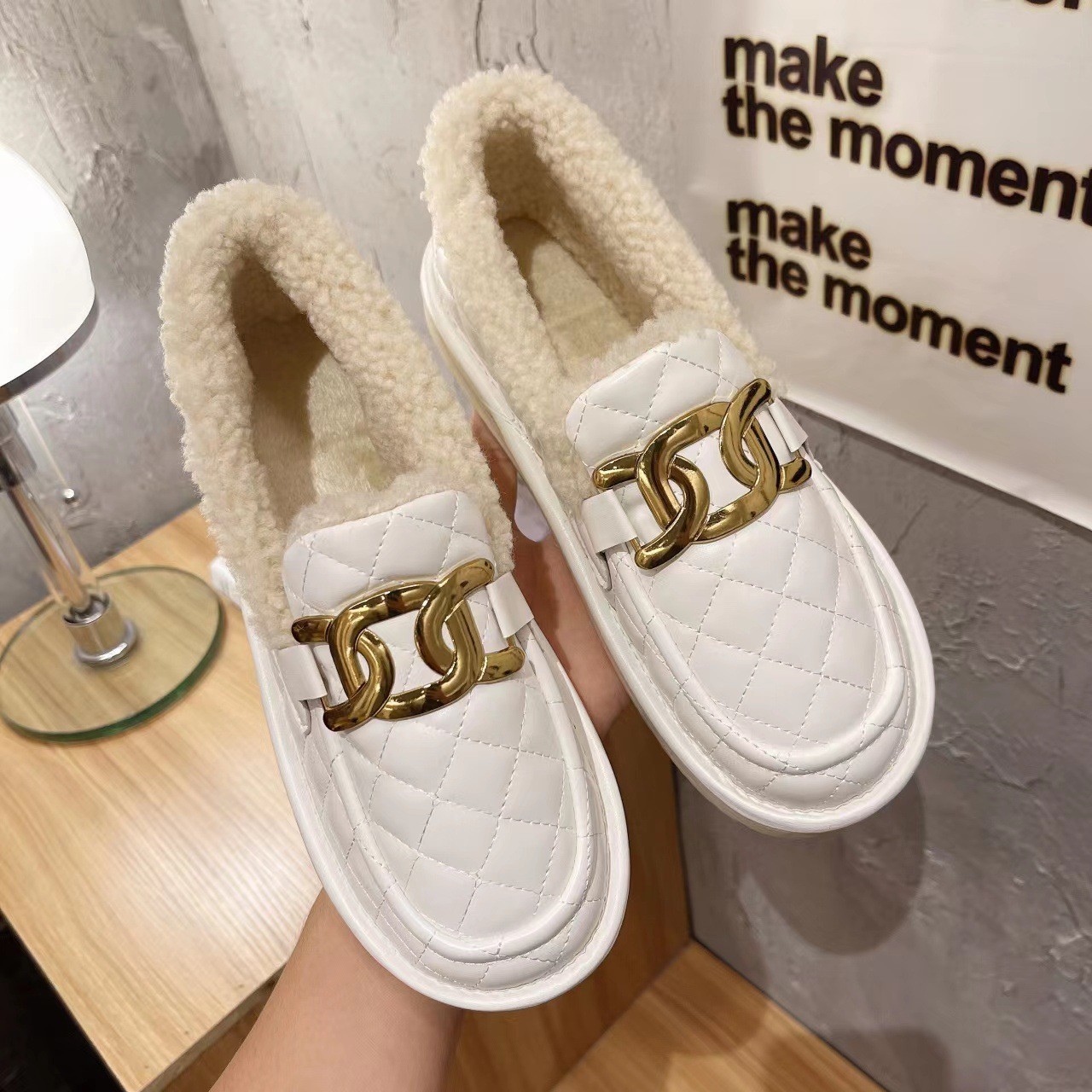 코튼 신발 여성 24 년 겨울 새로운 여성 코튼 신발 콩 신발 기모 따뜻한 여성 신발 로퍼 여성 제조 업체 도매스토어 가기