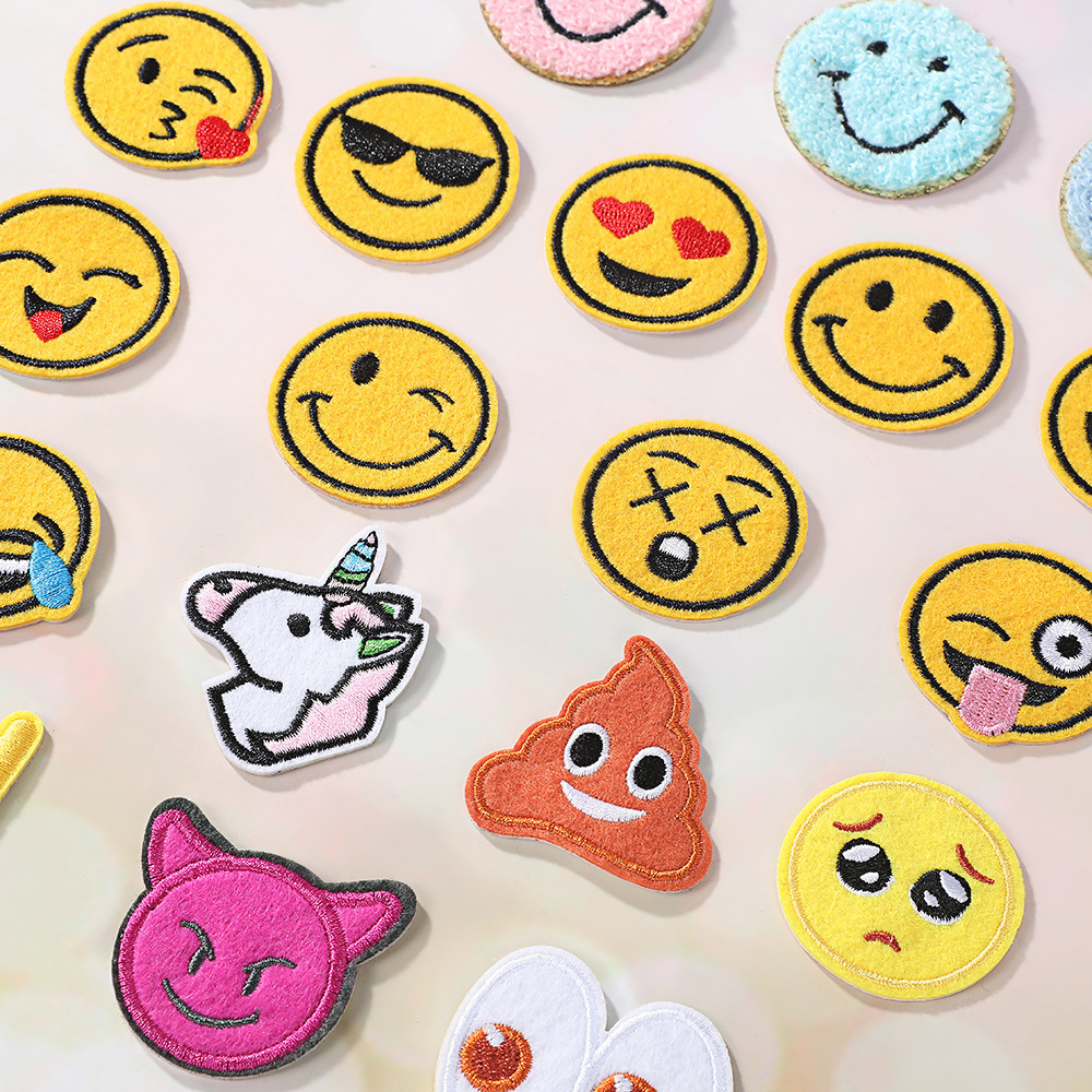 네트워크 귀여운 표현 가방 천 스티커 자체 접착 패치 의류 액세서리 가방 장식 스티커 꽃 로고 도매스토어 가기