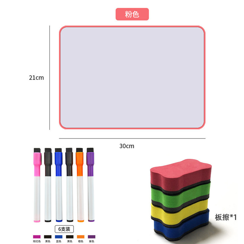• 핑크 양면 쓰기 보드 [1* 지우개 보드 + 6* 컬러 펜] - 21x30cm