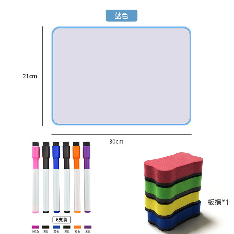 • 파란색 양면 쓰기 보드 [1* 지우개 보드 + 6* 컬러 펜] - 21x30cm