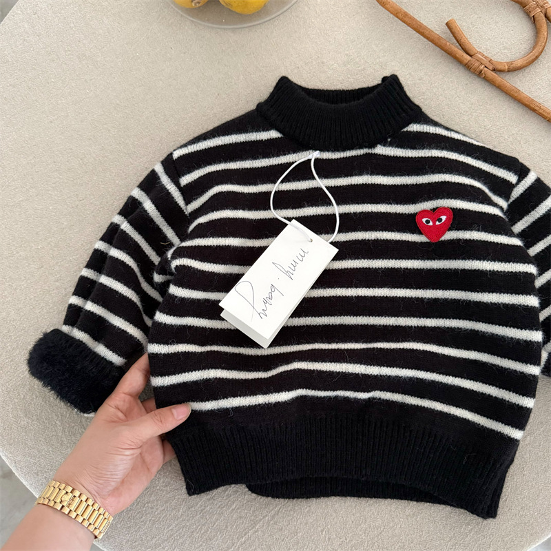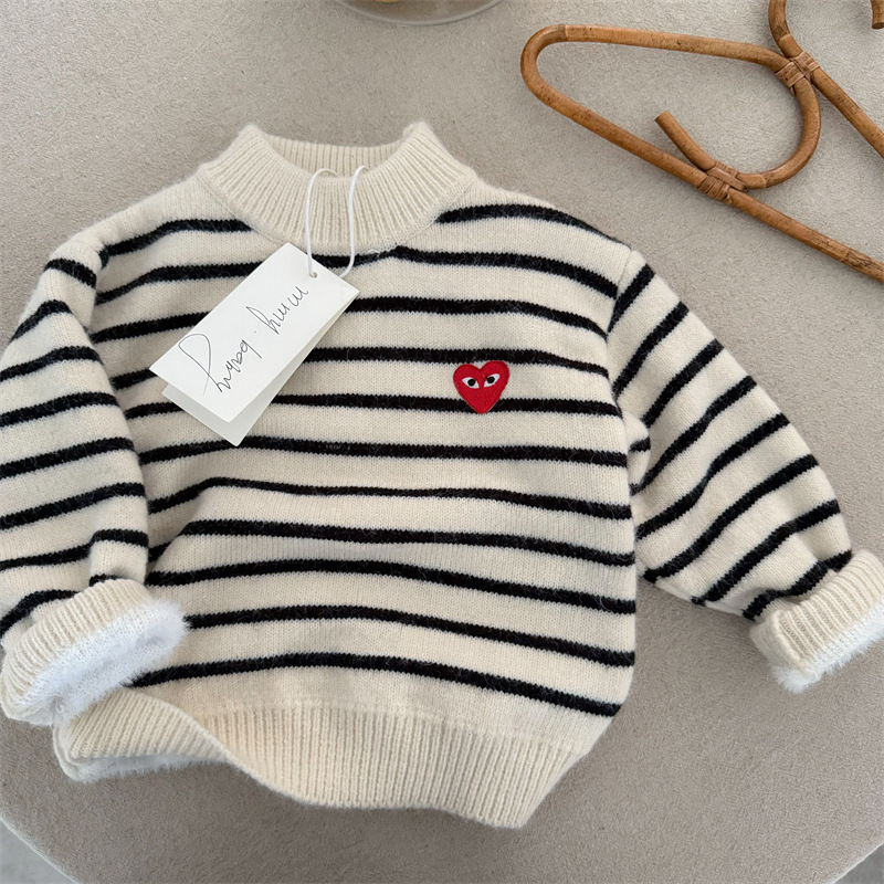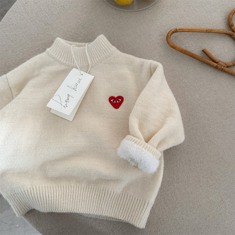 아동용 따뜻한 상의 풀오버 아동용 플리스 스웨터 두꺼운 남아용 니트웨어 한국 스타일 아기용 스웨터 가을 겨울