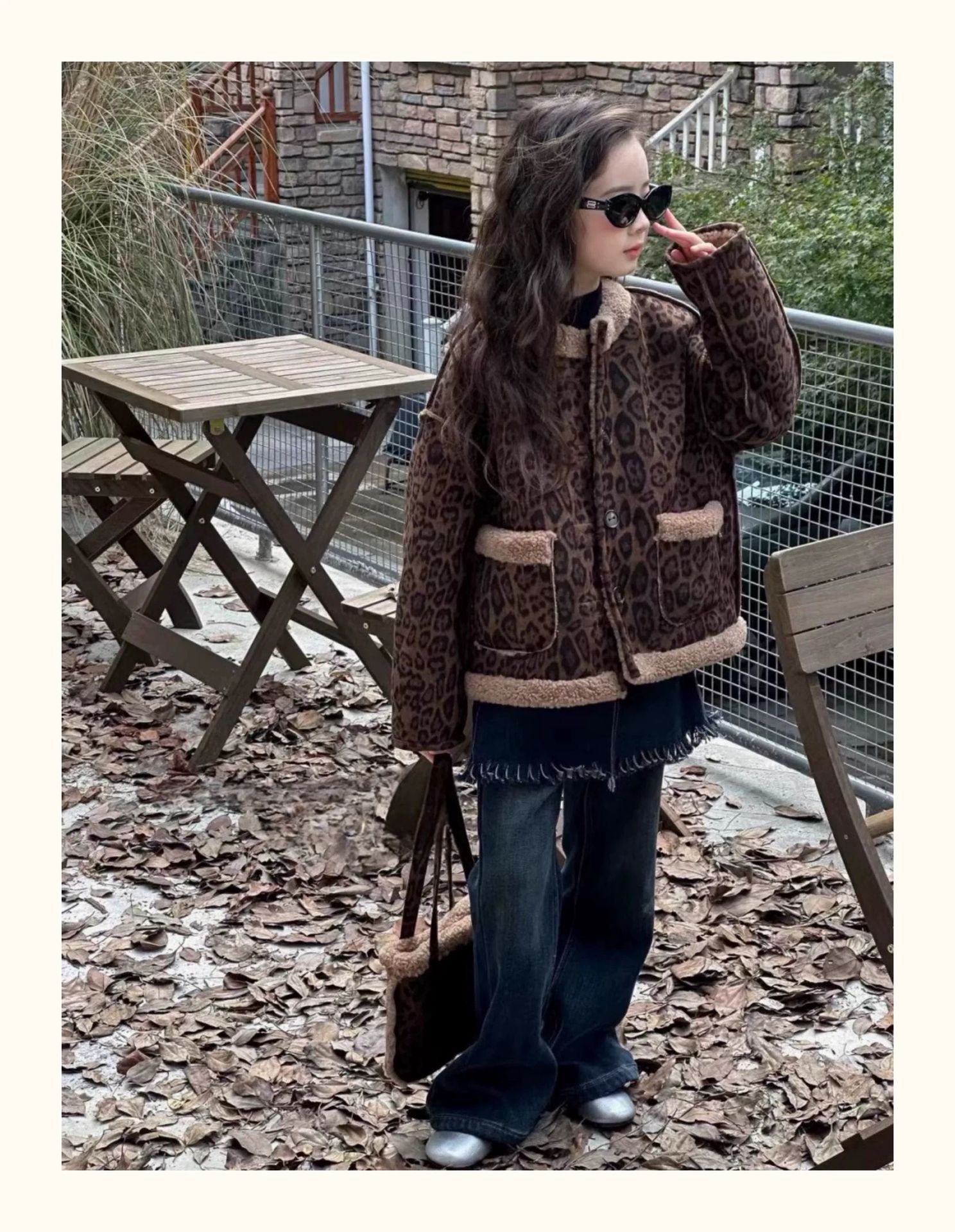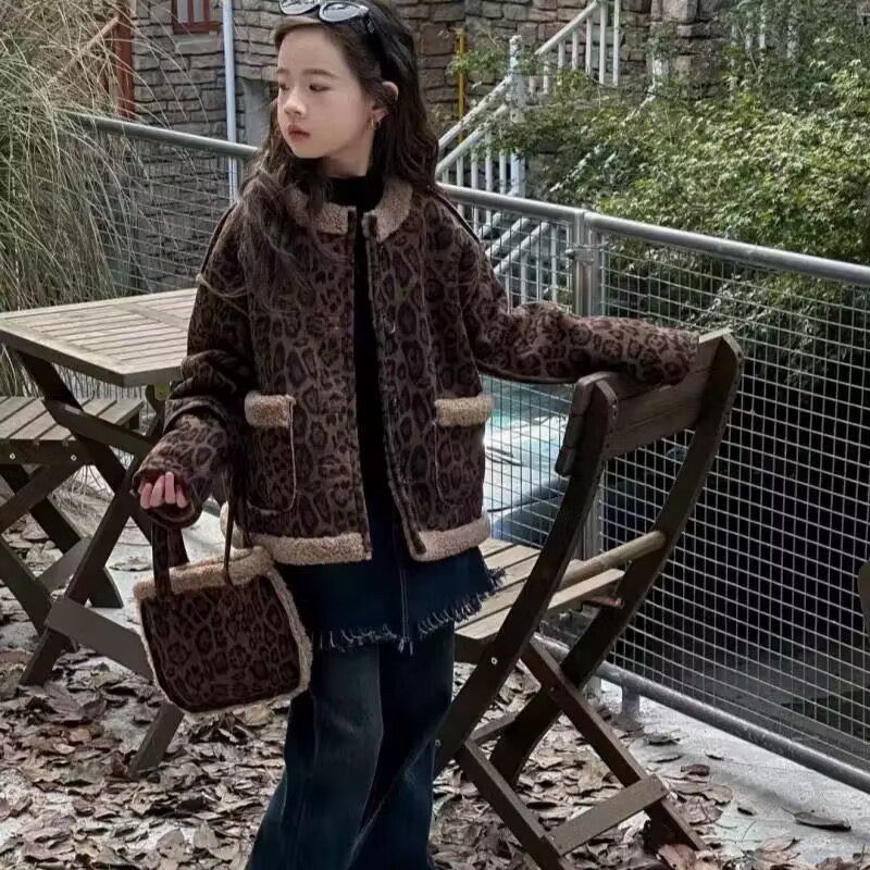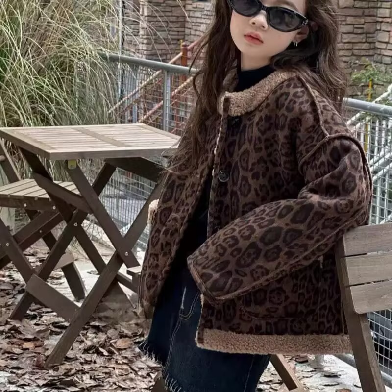 어린이 벨벳 코트 가을과 겨울 소녀 패션 레오파드 무늬 코트 3-8 세 아동복 헤어 세대