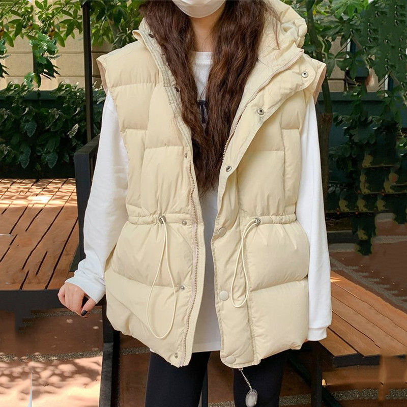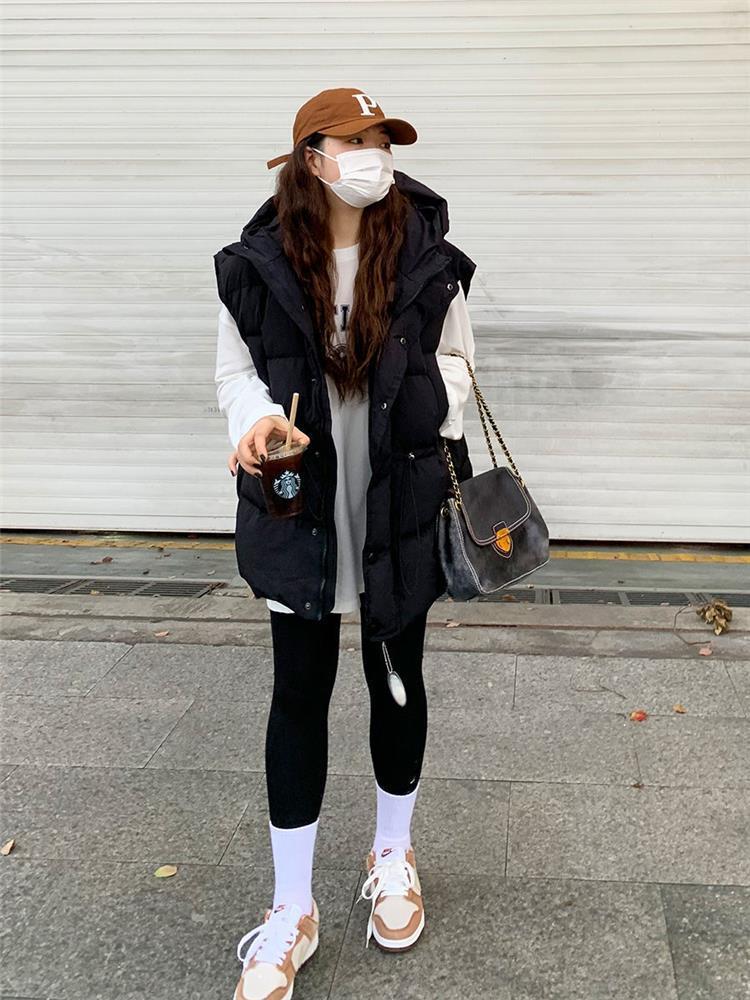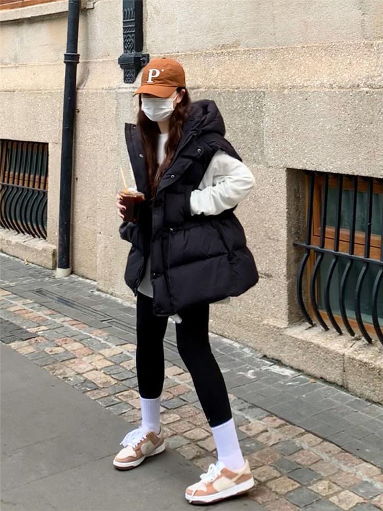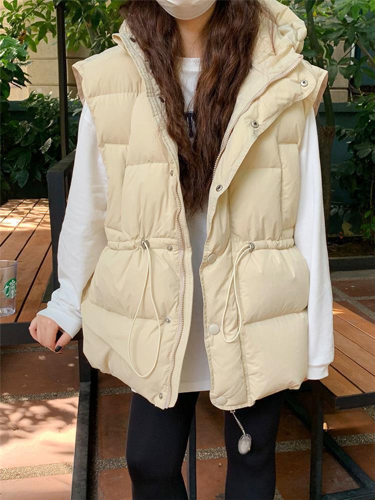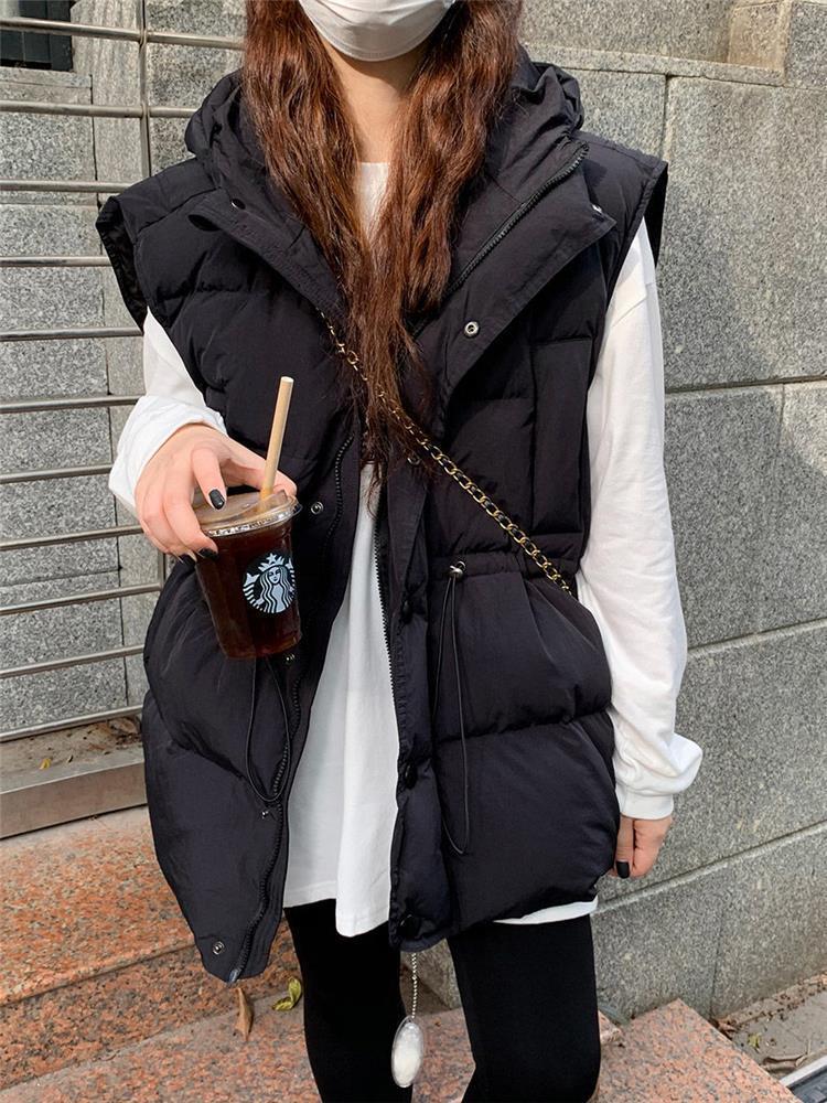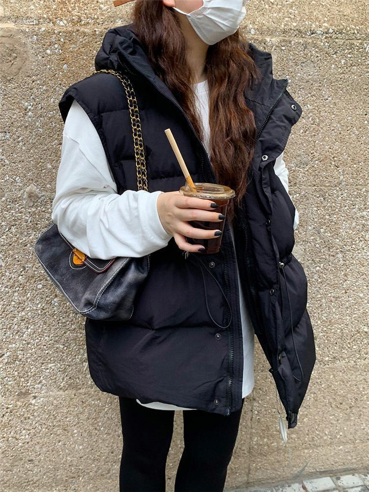 가을과 겨울 다운 조끼 여성 후드 아우터웨어 2024 새로운 두꺼운 한국 다운 코튼 조끼 재킷