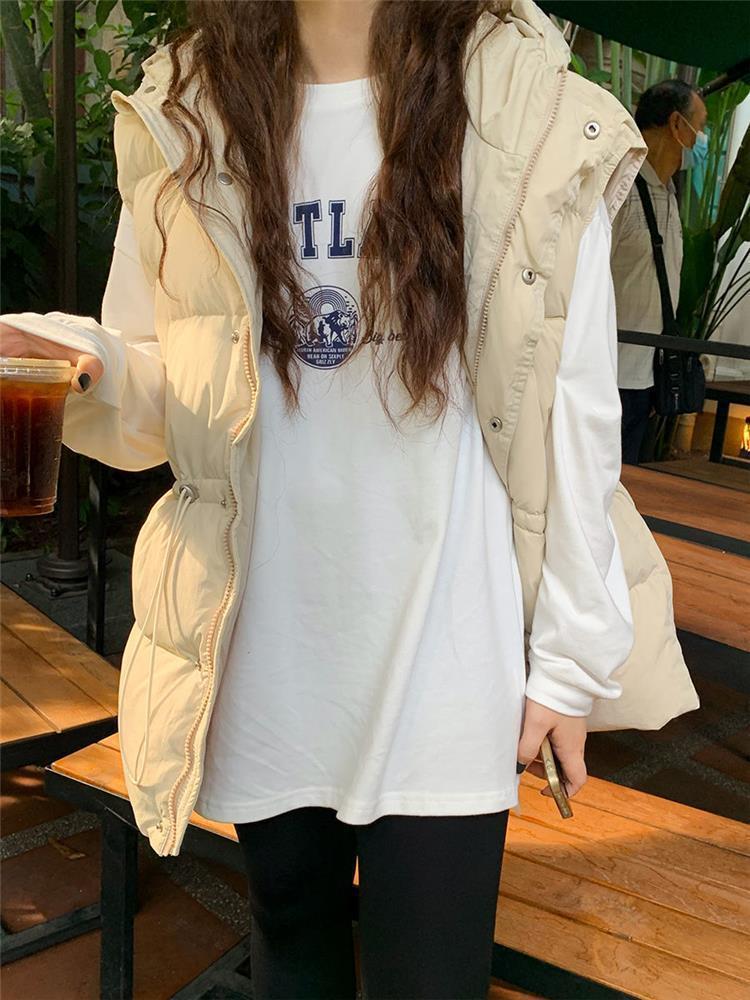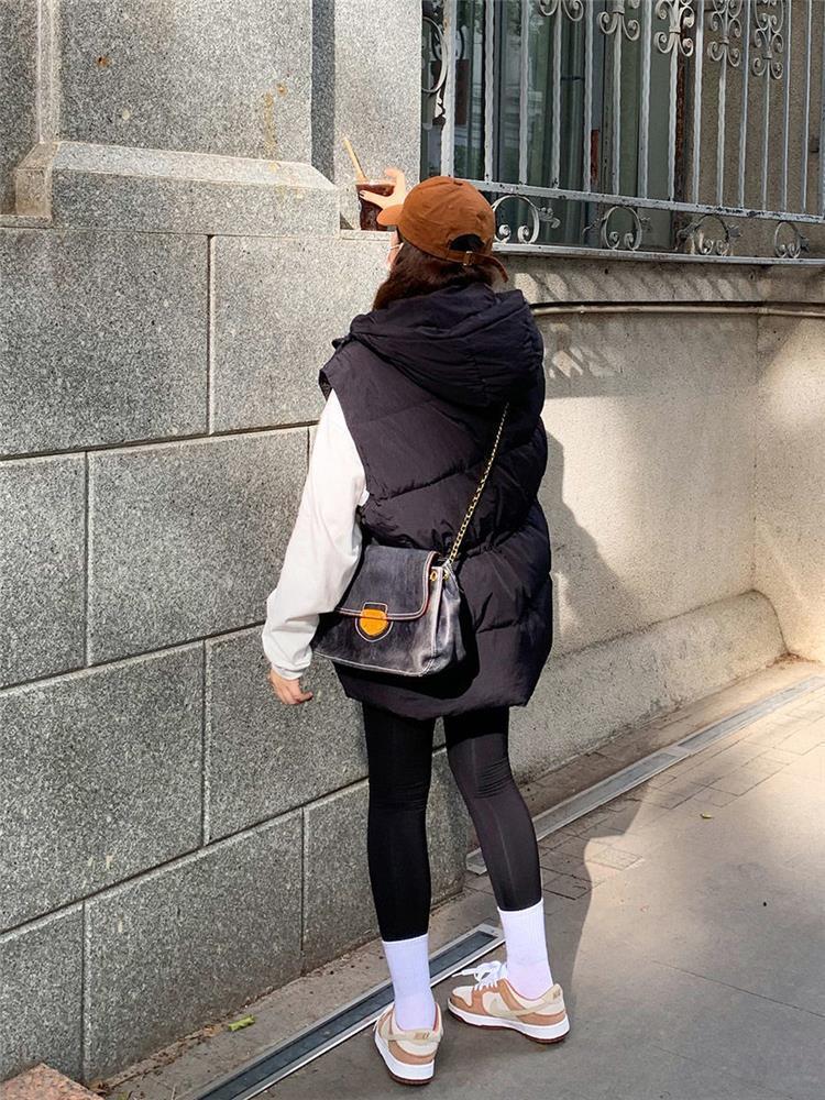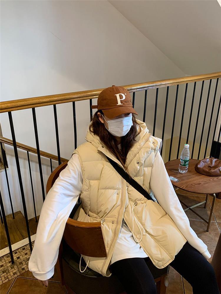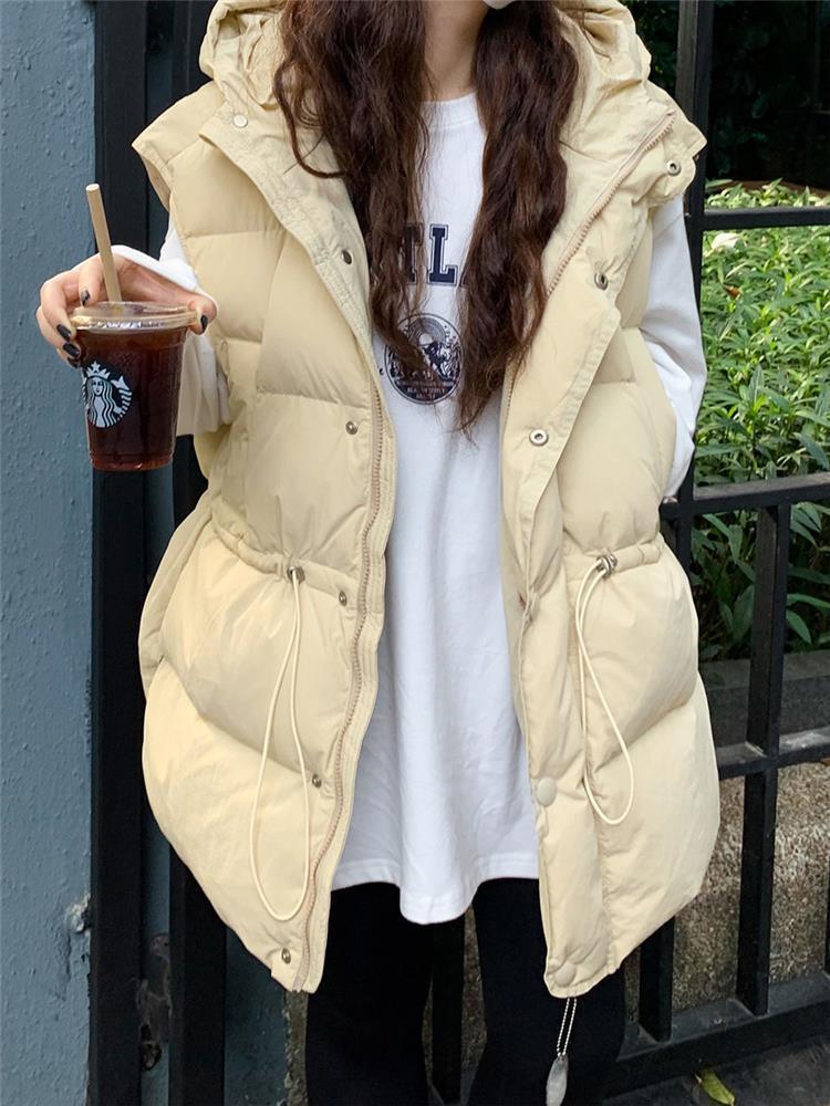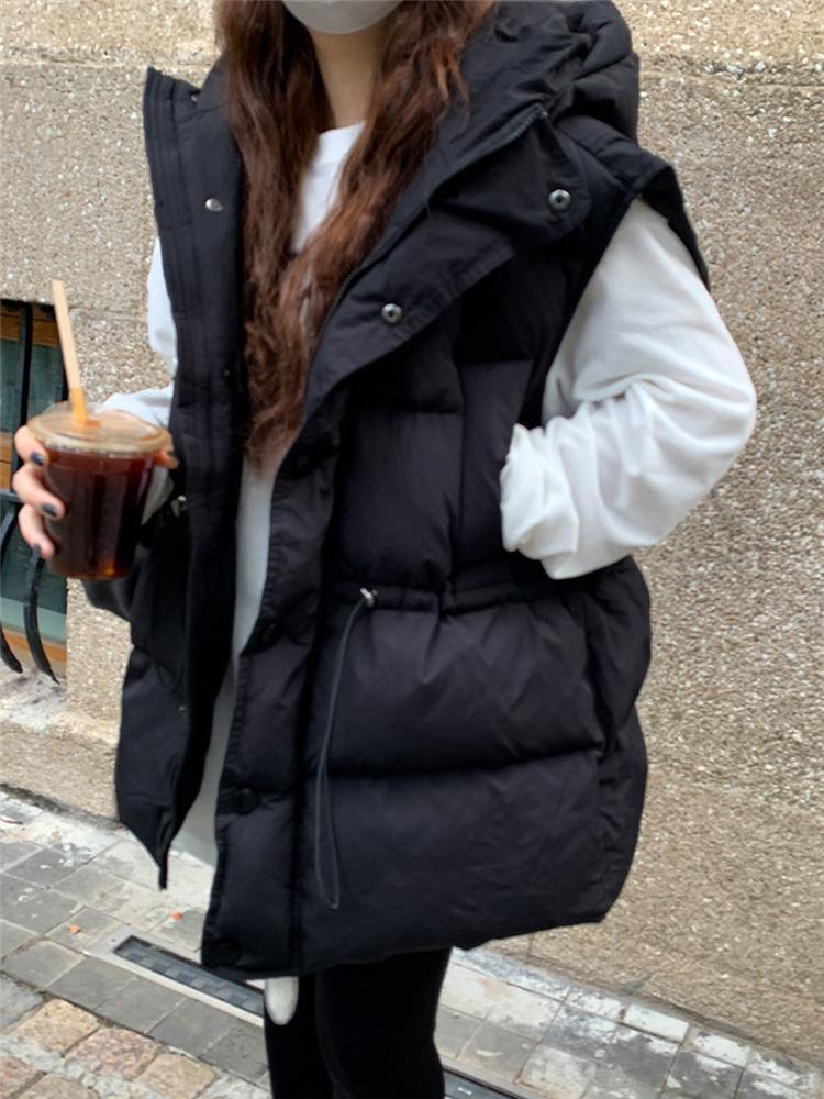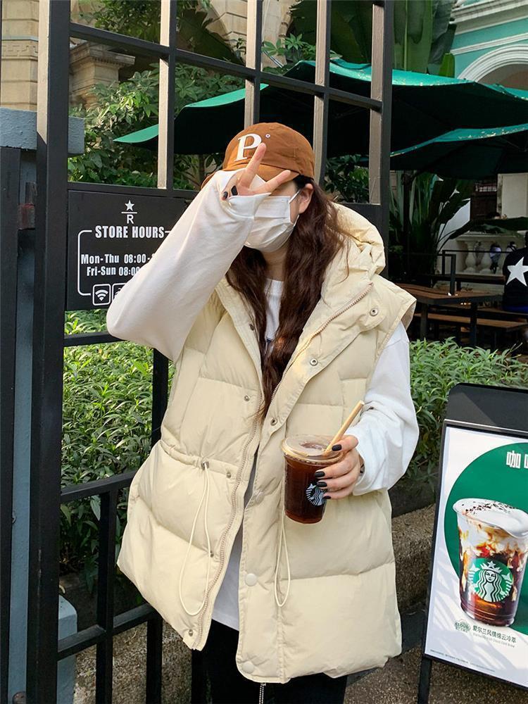 가을과 겨울 다운 조끼 여성 후드 아우터웨어 2024 새로운 두꺼운 한국 다운 코튼 조끼 재킷