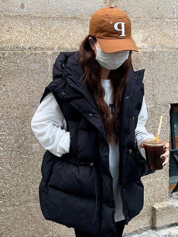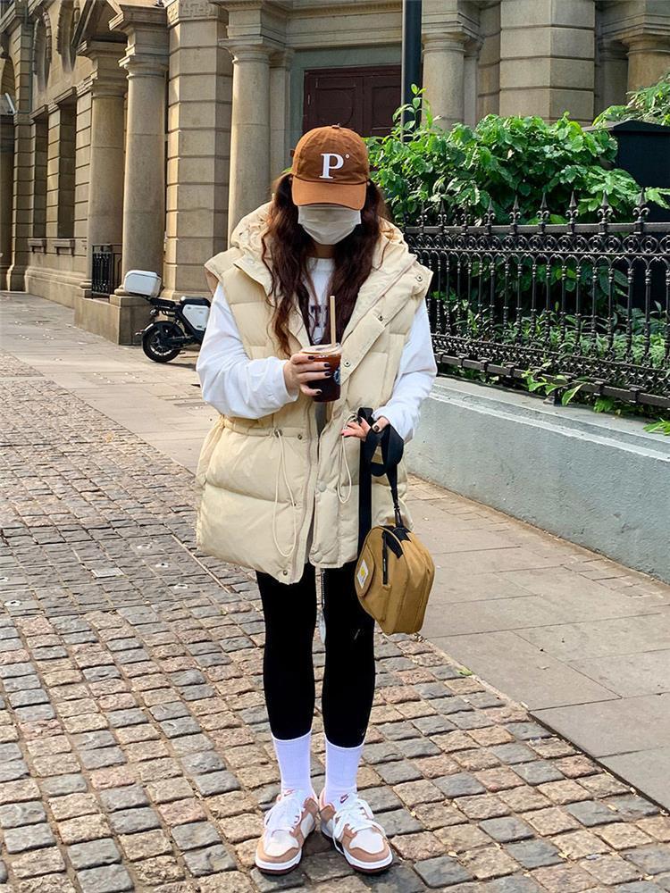 가을과 겨울 다운 조끼 여성 후드 아우터웨어 2024 새로운 두꺼운 한국 다운 코튼 조끼 재킷스토어 가기