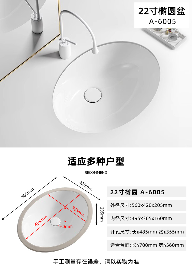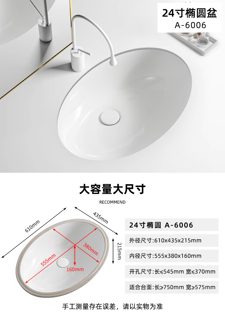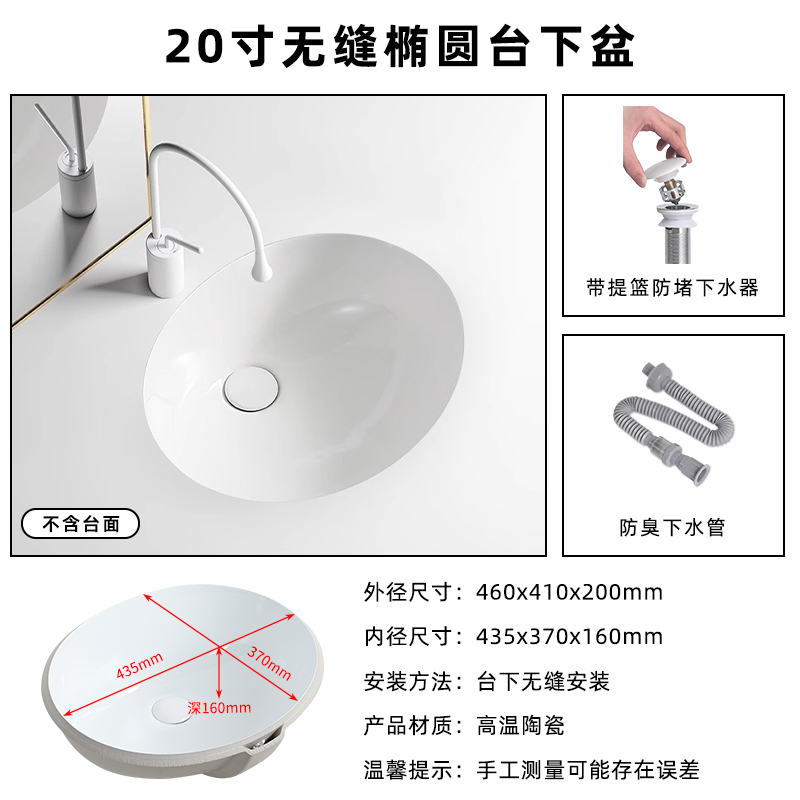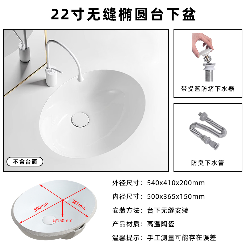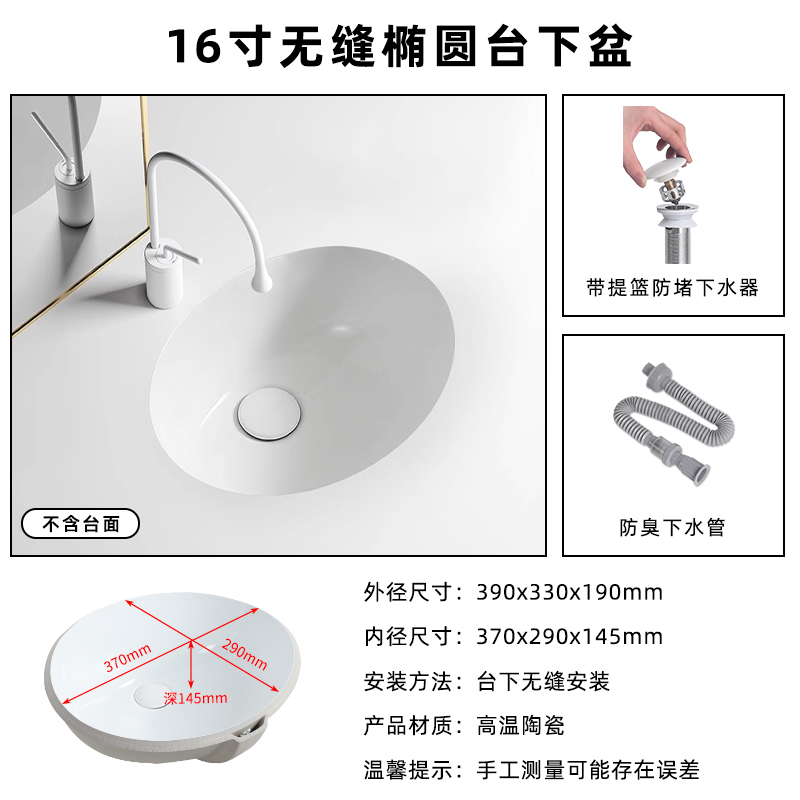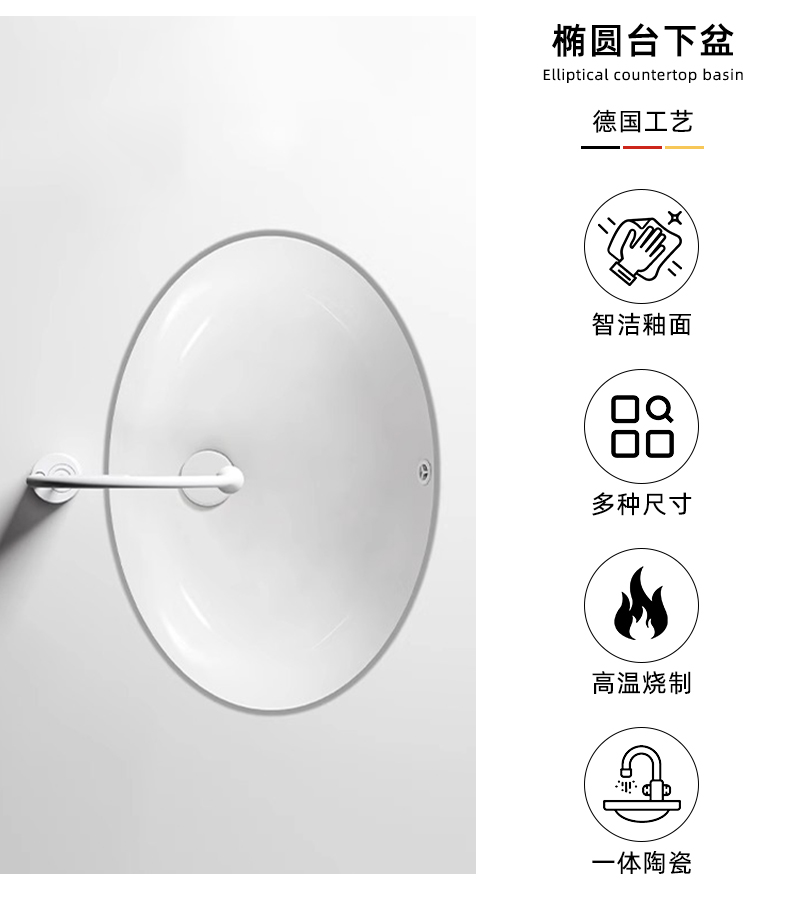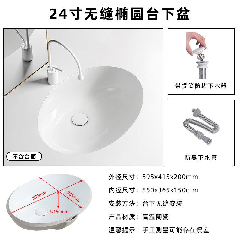 9C 록 플레이트 카운터 탑 원활한 카운터 분지 타원형 세라믹 임베디드 욕실 세면대 욕실 캐비닛 단일 분지스토어 가기
