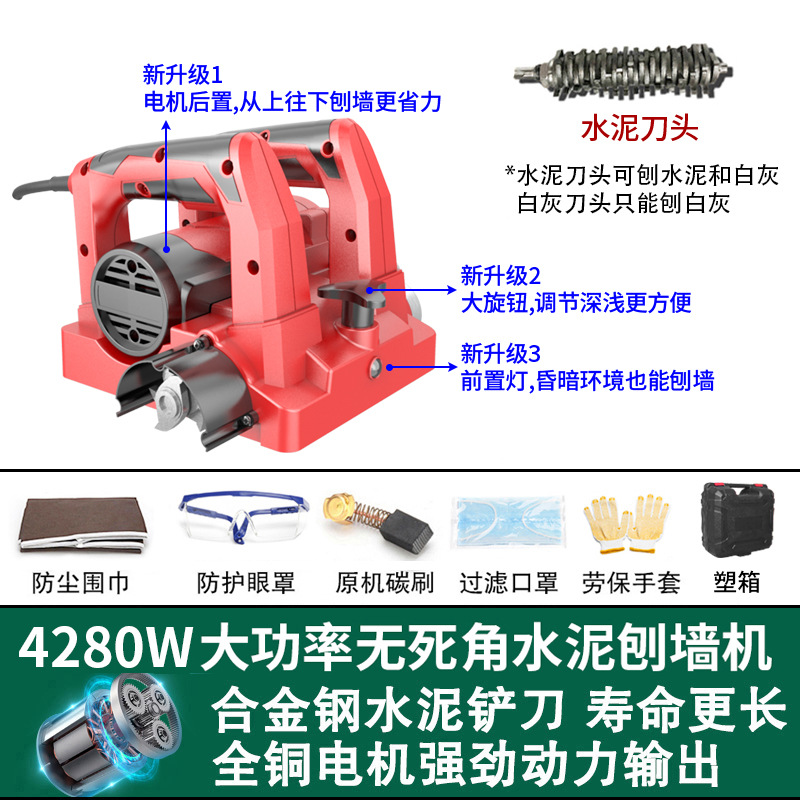 유명한 장인 벽 플래너 고출력 전기 삽 벽 기계 먼지가없는 죽은 각도없는 거친 대패 콘크리트 삽 퍼티 아티팩트 추스토어 가기