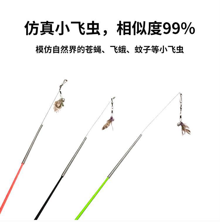 고양이 장난감 작은 비행 곤충 고양이 티저 스틱 교체 가능한 셀프 하이 깃털 긴 막대 소비 체력 고양이 장난감 고양이 용품스토어 가기