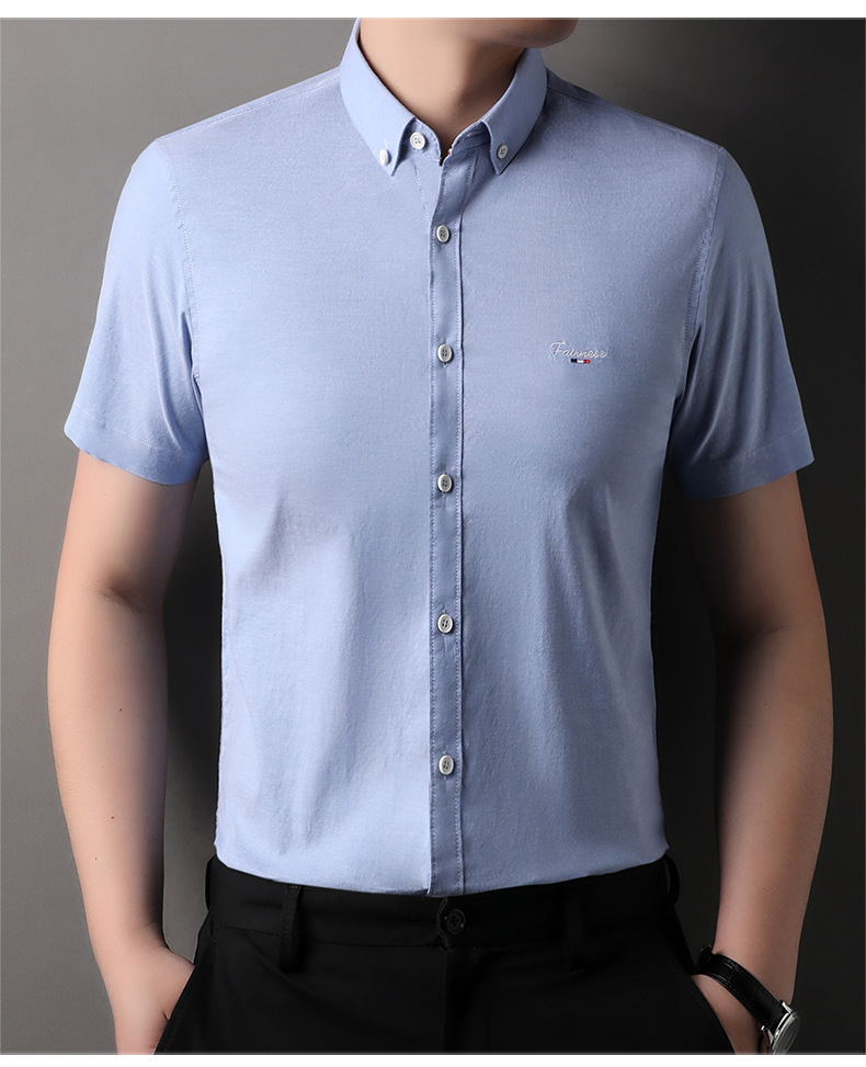하이 엔드 셔츠 남자 반팔 여름 코튼 반소매 비 다림질 남자 2024 새 옷깃 남자 캐주얼 셔츠