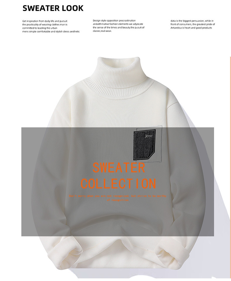 2024 년 겨울 폭발 기모 남성용 따뜻한 원피스 벨벳 내부 스웨터 하이 퀄리티 두꺼운 2 개 옷깃 니트 스웨터스토어 가기