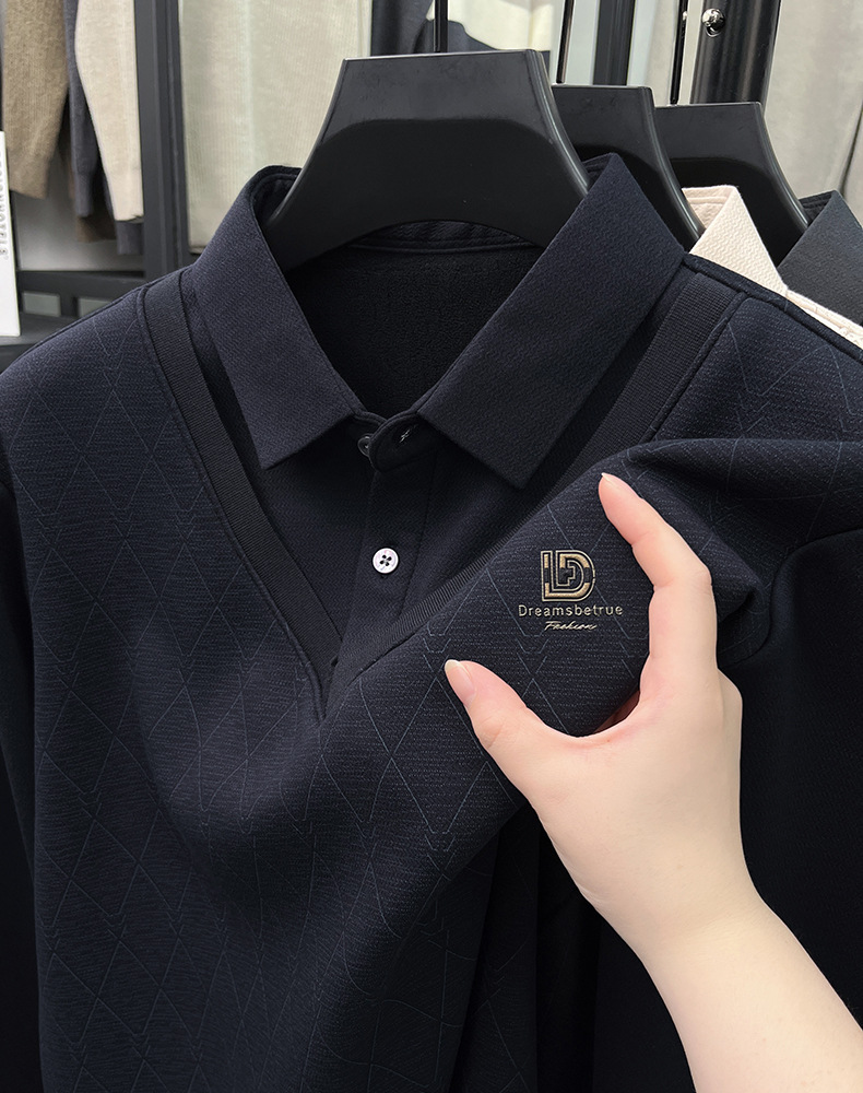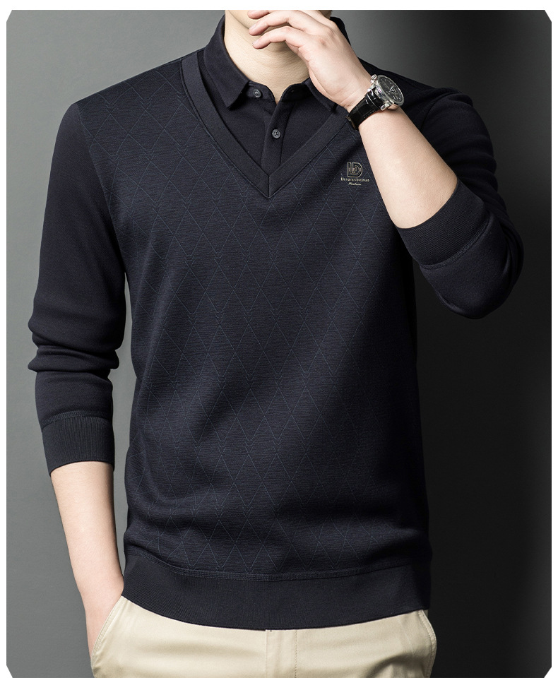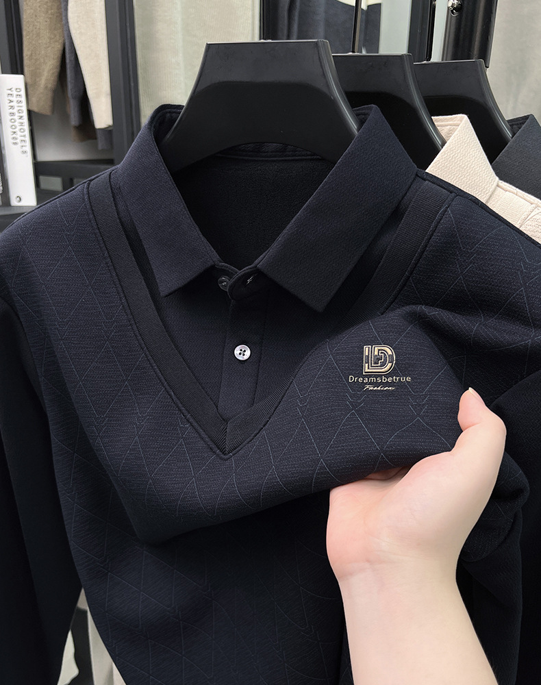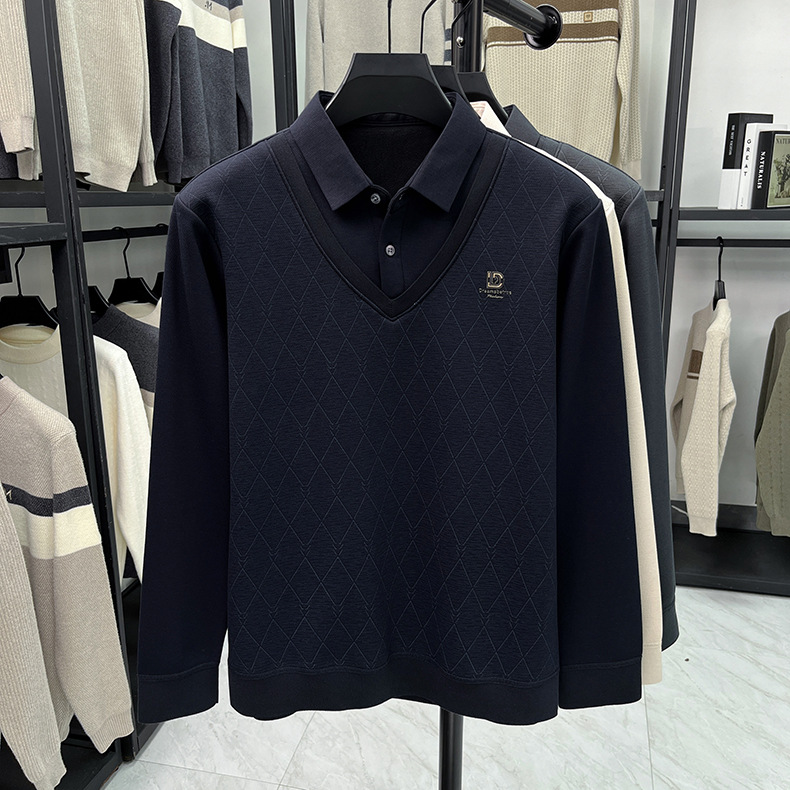 2024 새로운 중년 남성 스웨터 셔츠 칼라 기모 두꺼운 겨울 따뜻한 가짜 투피스 남성용 긴팔 티셔츠스토어 가기